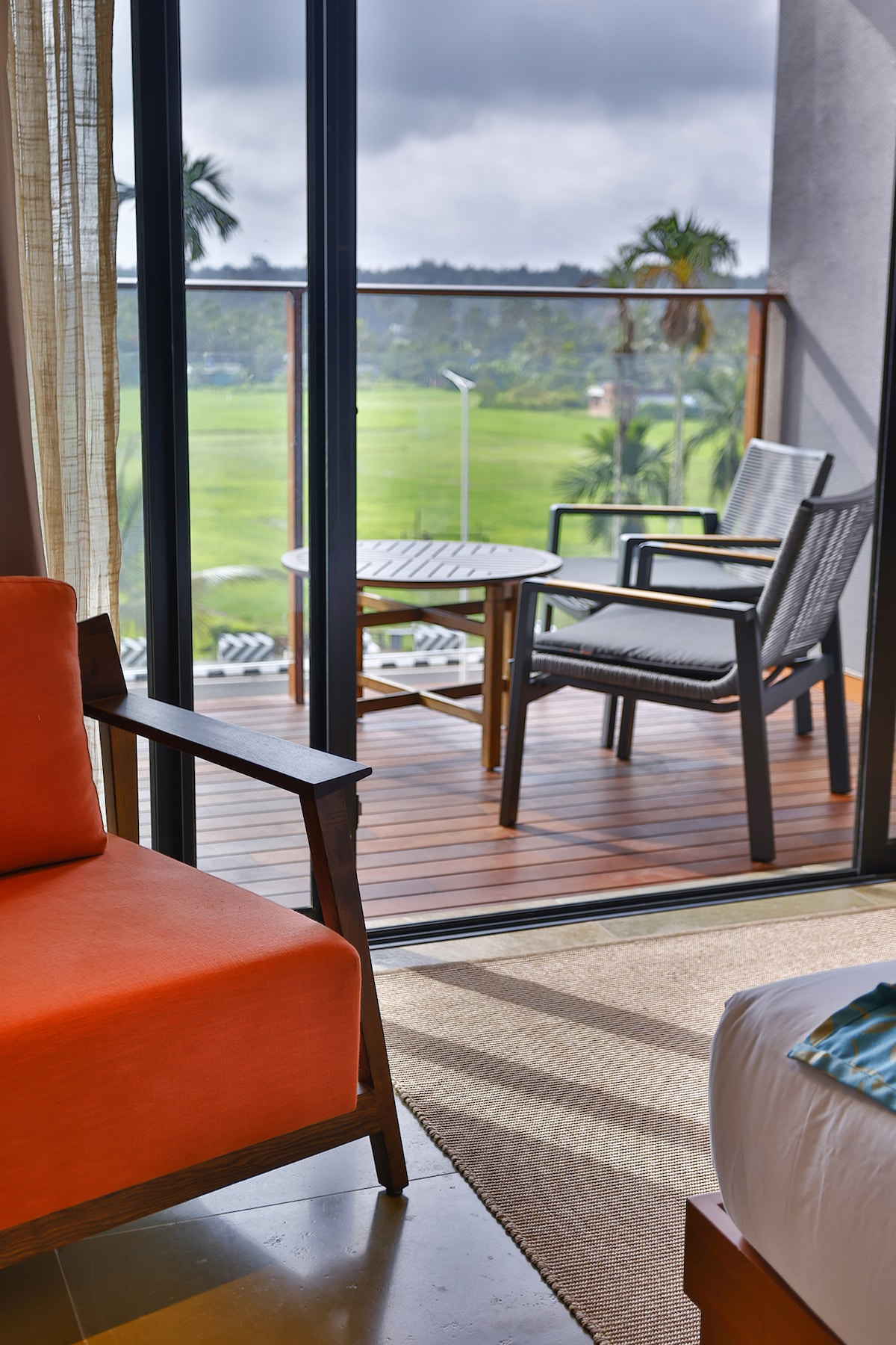 Enjoy a relaxing stay in our elegant Deluxe Room set amid the lush greenery of Wayanad. The spacious room features a private balcony with beautiful paddy field views, a comfortable bed and a cozy seating area. Modern amenities include air conditioning, free Wi-Fi, Smart TV, minibar, electric kettle and premium bathroom essentials. Guests also enjoy access to the swimming pool, gym, clubhouse, activity zone, multi cuisine restaurant and bar for a perfect blend of comfort, luxury and nature stay!