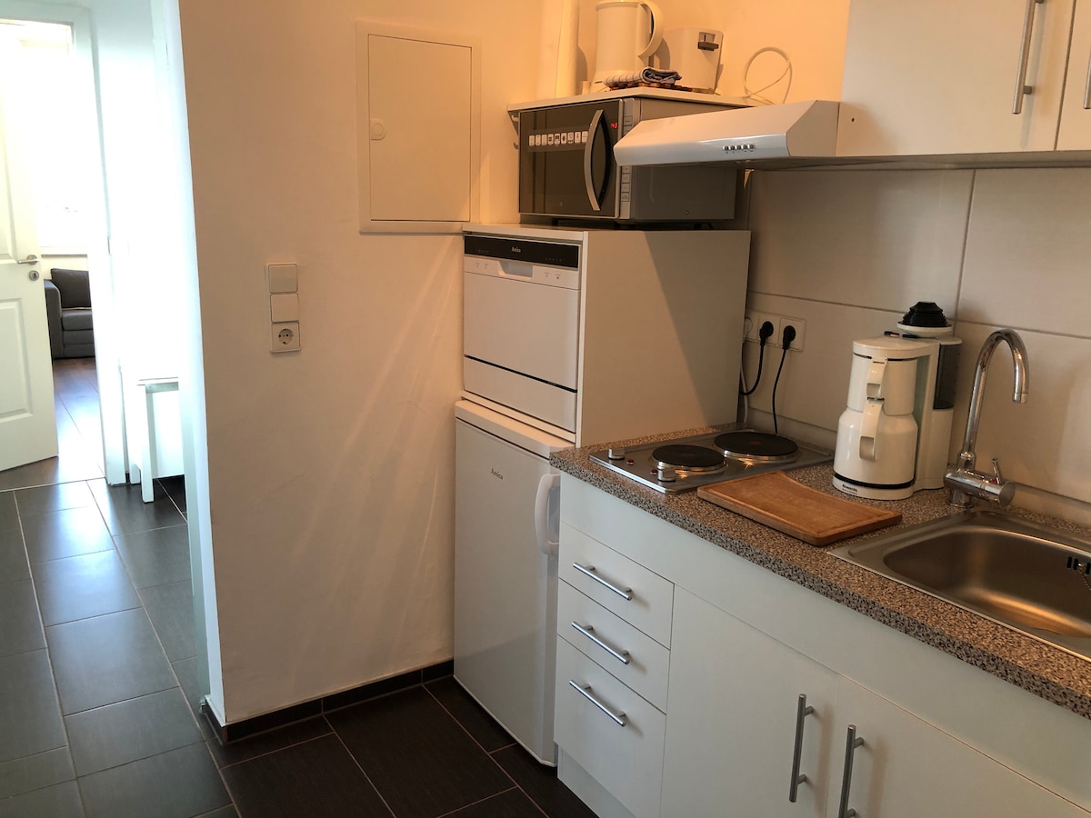 Die 1-Zi-Whg. liegt in der 1. Etage mit separatem Eingang. Fußbodenheizung, el. Rollläden, 3-fach verglaste Fenster, HD-TV, eine voll ausgestattete Küche und einiges mehr, bieten einen angenehmen Aufenthalt. Die max. Personenzahl ist 4, dann allerdings schon etwas eng und nur für einen Kurzaufenthalt geeignet. Optimal ist die Whg. z.B. für 2 Erwachsene mit Kind. Ein Babybett, ein Kinder-Reisebett, sowie ein Kinderhochstuhl kann gegen eine geringe Gebühr bereitgestellt werden (5€ pro Aufenthalt).