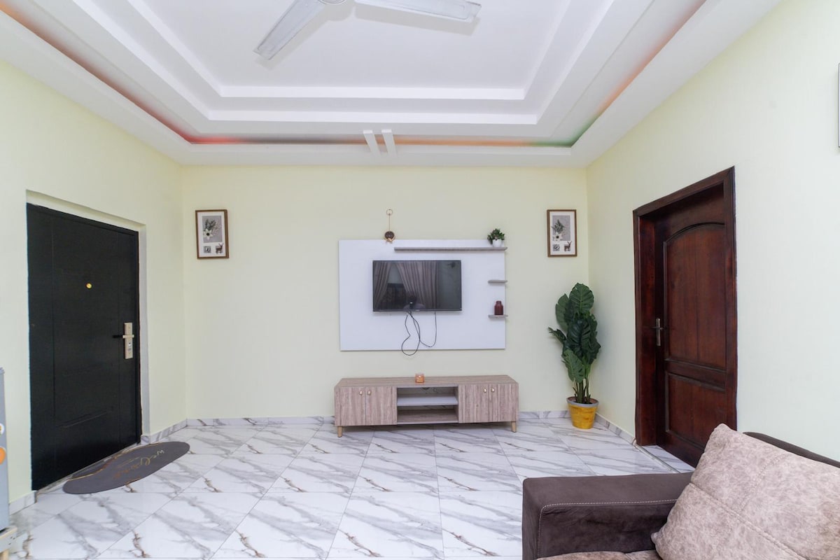 Dobro došli u naš prelepi apartman sa 3 kupatila sa 3 kupatila koji se nalazi u Akri (Gana). Doživite luksuz i udobnost u srcu Mallama u Akri. Ovaj elegantni stan ima moderne sadržaje, potpuno opremljenu kuhinju i udoban životni prostor. Uživajte u pogledima koji oduzimaju dah i neusporedivom gostoprimstvu. Savršeno za solo putnike, parove i poslovna putovanja. Samo 25 minuta od aerodroma Kotoka, 20 minuta do tržnog centra Akra i 10 minuta do tržnog centra Vest Hils. Radujemo se što ćemo vas uskoro ugostiti