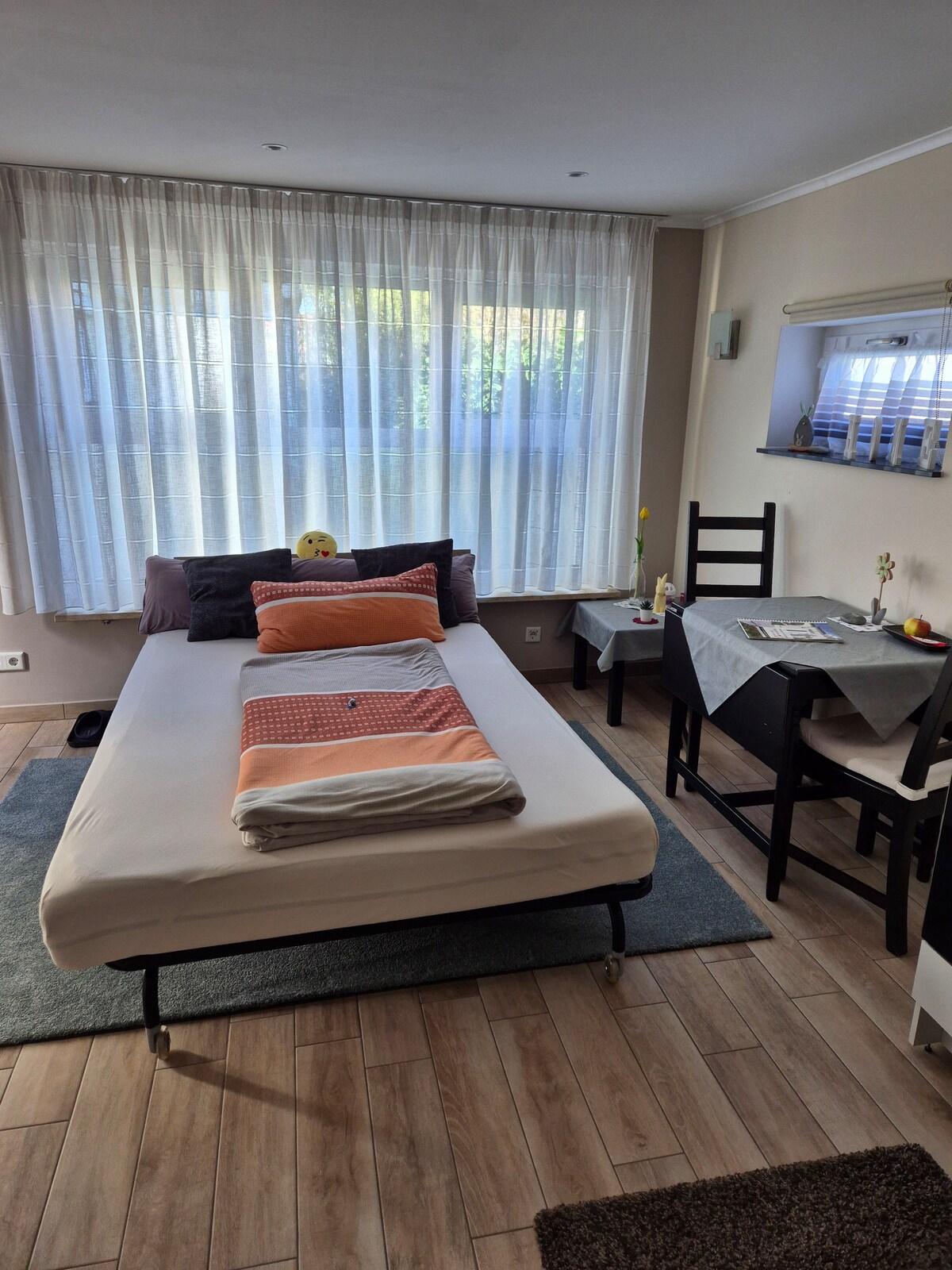 S ljubavlju namješten, novouređen i vrlo dobro opremljen stan nalazi se u zgradi, koja je odvojena od glavne kuće. Živite na veoma mirnoj lokaciji na južnom predgrađu Nirnberga. Javnim prevozom (autobusom / metroom) možete stići do glavne železničke stanice za 25 minuta bez stresa. Autobuska stanica je udaljena svega nekoliko minuta hoda. Najlakši način da dođete do izložbenog centra u Nirnbergu je automobilom za samo 20 minuta.