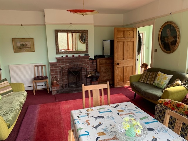Ova neobična odvojena staja puna je karaktera i mira (nema WI-FI). Postoji kuhinja/dnevni boravak otvorenog tipa sa udobnim gorionikom ( cjepanice su dostupne po cijeni od 7 £ po mreži) i barom za doručak prekrivenim škriljcem. Objekat ima čvrste hrastove podove, osim škriljca u kupatilu, zato ne zaboravite papuče! Kuhinja uključuje rernu, ploču za kuvanje, frižider sa zamrzivačem, toster, mikrotalasnu rernu i čajnik. Udoban prostor za sjedenje otvara se na atraktivno dvorište i travnatu površinu. Žao nam je, nema kućnih ljubimaca