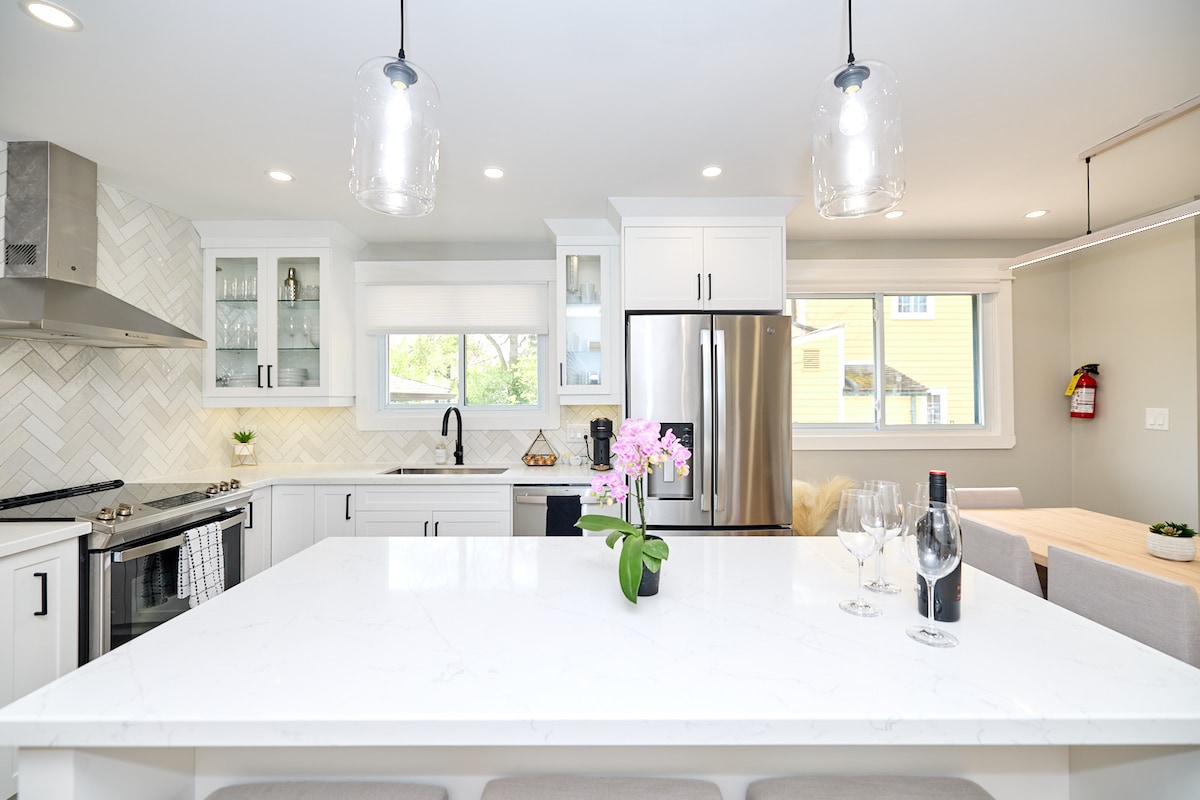 Escape to the serene beauty of Niagara’s Wine Country at our newly-renovated modern bungalow—located just 15-minutes from The Falls! Indulge in ultimate comfort with cloud-like beds, Restoration Hardware furnishings, FOUR smart TVs, and the convenience of an EV charging station. Retreat to the lower-level media room, complete with an Italian Soda station and games table, or unwind in the backyard which boasts a fire pit, badminton net, hammock & BBQ for memorable al fresco dining.