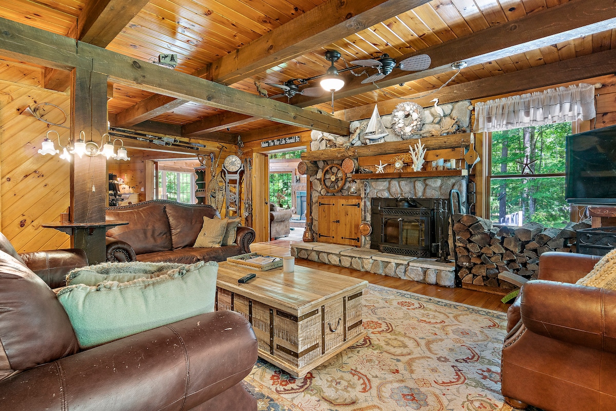 Look out onto the always-changing Ossipee River from this cute little log cabin. Use our tandem kayak, or fish and swim from our dock. In the winter months, ride your snowmobile right from the driveway, take a brewery tour in Portland, head to the White Mountains, or just watch the river go by. Cornish, Maine is just 12 minutes away and has plenty of dining and shopping opportunities.