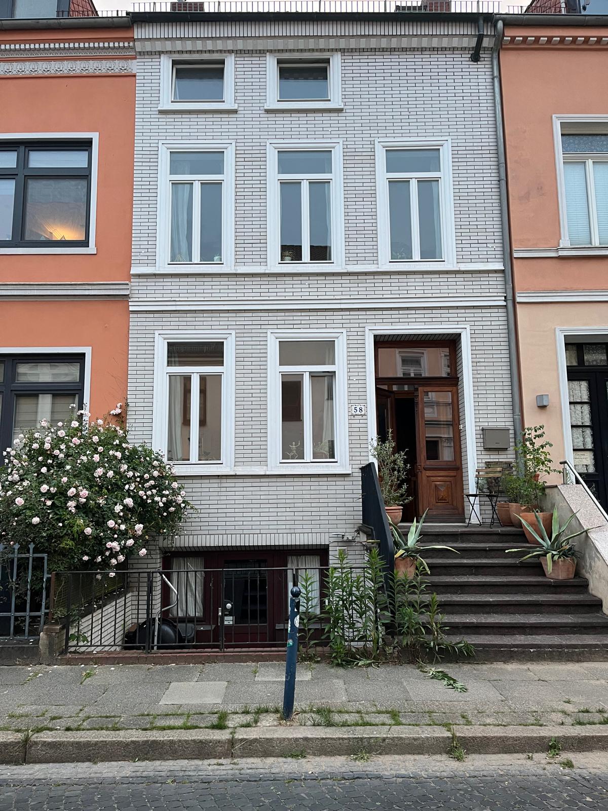 Meine Wohnung im Geteviertel ist 125 qm groß über 2 Etagen im Hochparterre und Souterrain eines typischen Altbremer Hauses. Das Gästeschlafzimmer (1,60 m Bett) liegt im ruhigen Souterrain zum Garten mit kl. Terrasse. Hier befindet sich auch ein Duschbad. Im oberen Bereich liegen Wohnzimmer mit TV, Küche und Esszimmer (ebenfalls mit TV) mit oberer Terrasse zum Garten mit altem Baumbestand. Das Gäste-WC kann mitbenutzt werden. Bäcker, Bus- und Bahnstation (8 min. zum Hbf.) sind 300 m entfernt.