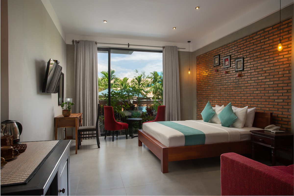 Vila u prirodnom kmerskom stilu sa 12 jedinica koje okružuju predivnu baštu. Postoji bazen, spoljašnji i unutrašnji trpezarijski prostor. Naša kuhinja poslužuje doručak, ručak i večeru. Takođe možemo da vam organizujemo časove domaće kuhinje. Nalazimo se u mirnom području 2,5 km od centra grada, pabske ulice, noćne pijace, a odmah iza cirkusa, pored farme za jahanje konja i vožnje biciklom. Tuk tuk je dostupan u bilo koje vreme.