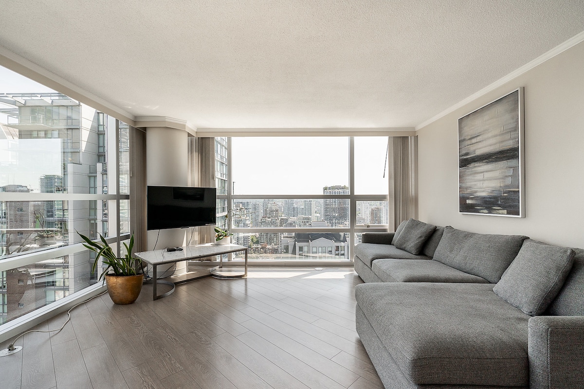Prekrasan stan koji se nalazi u najboljoj oblasti u centru Vankuvera. Odmah pored najpopularnijih ulica za kupovinu i objedovanje. Dolazi sa osiguranim parkingom. Lepo i prijatno tokom leta. Bazen, hidromasažna kada i sauna u zgradi. Smještaj je veliki, prostran i lijepo uređen. Uživajte u najboljem što centar Vankuvera ima da ponudi u ovom prelepo uređenom domu.