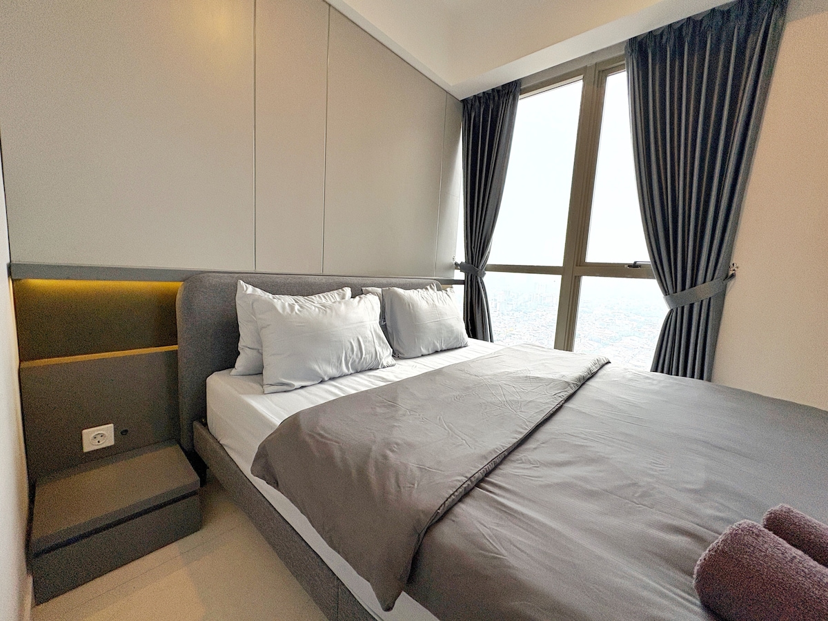 Discover our city-center apartment where modern design meets family-friendly comfort. Enjoy the spacious interiors featuring high-quality appliances. The apartment is a corner unit, meaning you will get both a tropical-themed pool and a breathtaking city view in every room. The apartment is directly connected to Hub Life and Taman Anggrek Mall, which are a few steps away from Central Park Mall.