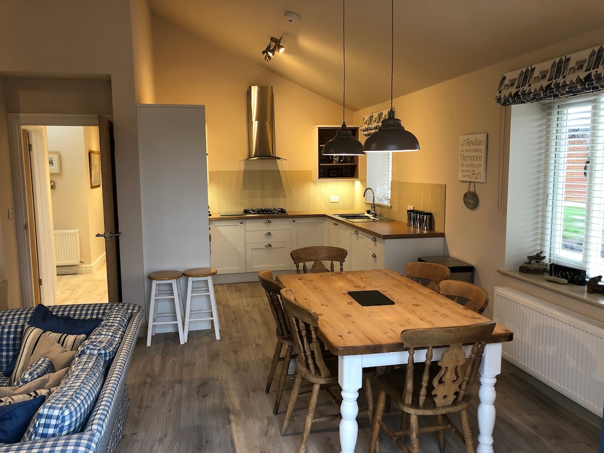Ovaj elegantni bungalov udaljen je nekoliko trenutaka od plaže i ima predivan pogled na zalazak sunca na polja. Odličan prostor za odmor na plaži i u blizini lokalnih seoskih prodavnica. ✔ 3 spavaće sobe Spavaća soba 1 - 1 bračni krevet Spavaća soba 2 - 1 krevet za jednu osobu i 1 futon Spavaća soba 3 - 1 krevet za jednu osobu Trpezarijski sto sa sedištem za 6 osoba Kuhinjski bar sa sedištem za 3 osobe ★ BAŠTA ★sa predivnim pogledom na polja. Posmatrajte zalazak sunca sa staklom u ruci zagrijanim uz ognjište .
