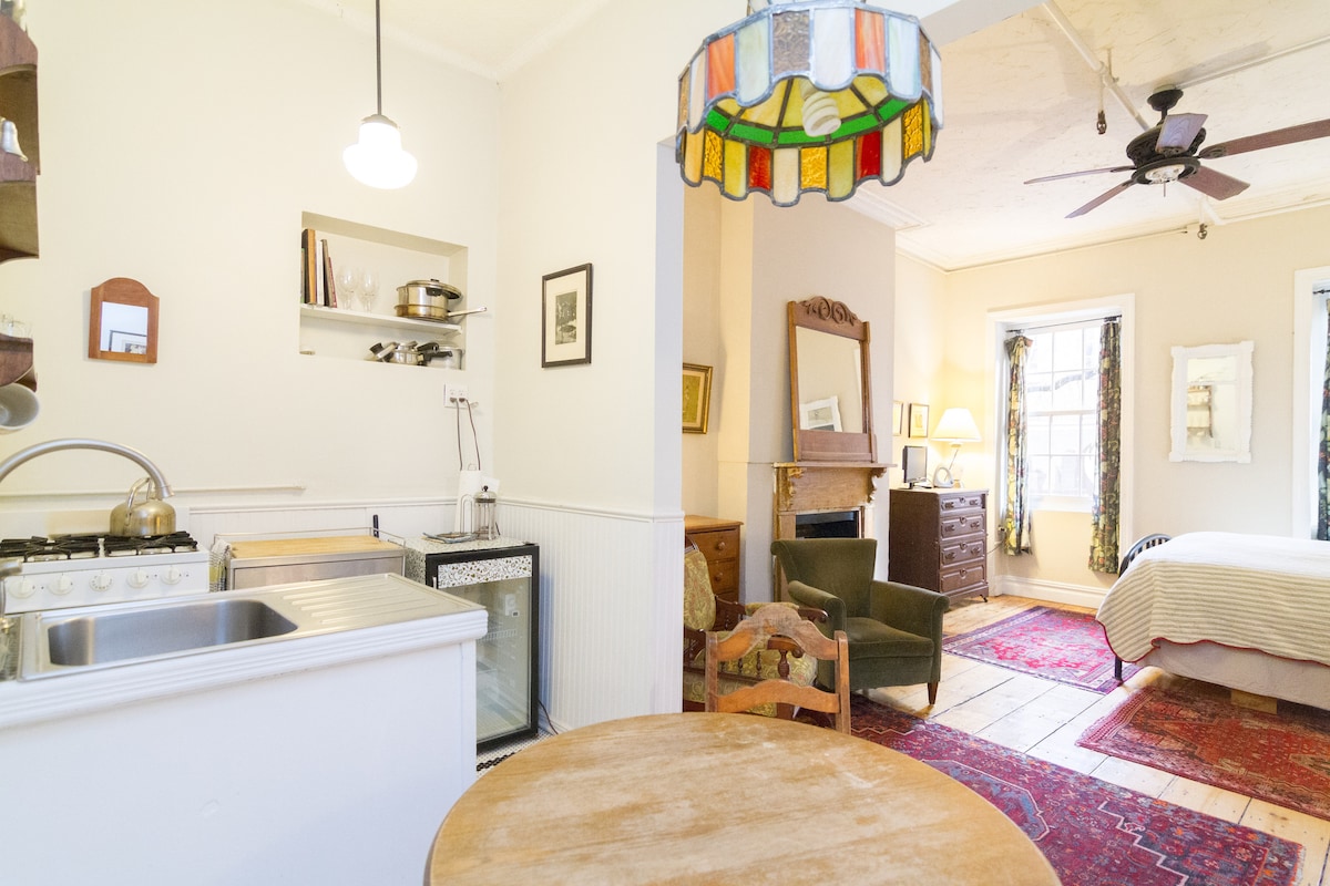 PRVO pritisnite dugme „Kontaktirajte domaćina” (pomerite se nadole). Ne blokirajte kalendar! Minimalno 5 noćenja do 2 nedelje unapred, 1 noćenje dan unapred. Apartman je jedan sprat iznad. Visoki plafoni od 3,5 metara, dekor je starinski i domaćinski. Jednostavna kuhinja i kupatilo, ali sa svime što vam treba da živite kao Njujorčanin. Visoki prozori gledaju na Džons strit. Naša cena uključuje vaučer za 10% popusta na doručak/ručak ili besplatnu kafu/čaj uz bilo koju kupovinu hrane u slatkom restoranu u našem bloku pod nazivom Foursome.