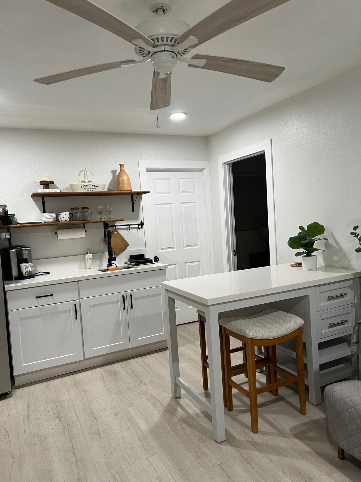 Nestled in friendly Hadley Hills this apartment sleeps up to 4 in 2 Queen beds. Short walks to local restaurants, bars, college and walking trails. New finishes appliances, fixtures, furniture, artwork, lighting, ceiling fans, ac/heat units, smoke detectors and windows. Fully stocked kitchen supplies with private entry. Newly installed exterior motion sensor lighting and security door. Enjoy the peak a boo city skyline from living or bedroom.
