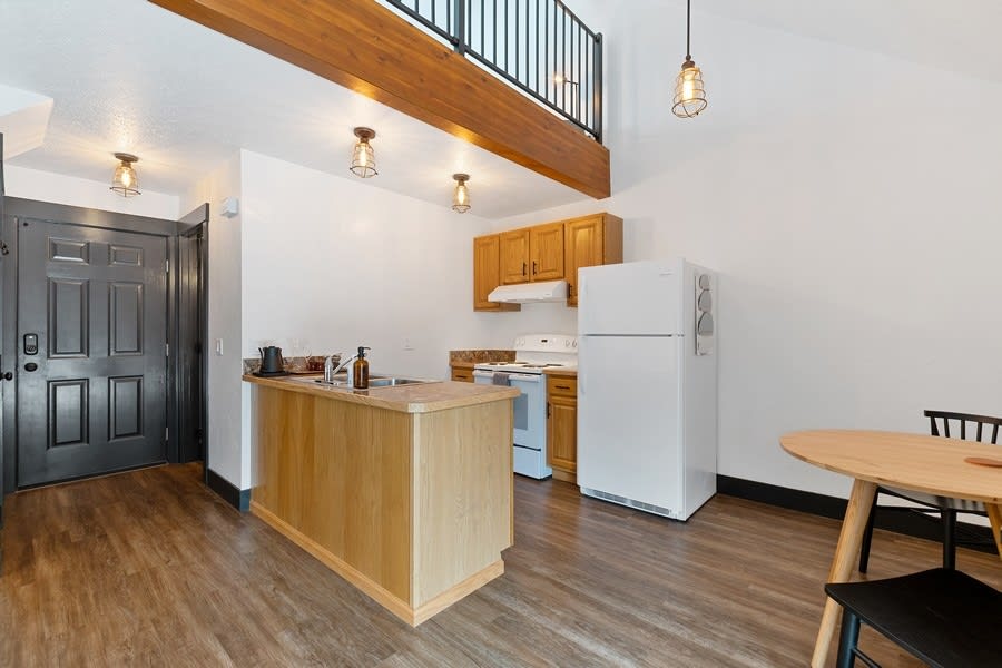 The Lake Loft is a cozy, modern studio, in the heart of downtown McCall. This apartment has a full kitchen with granite counter tops, cookware, & dishwasher. This is the perfect spot for a romantic getaway, business traveler, wedding guests or a family of 3 to come explore McCall. The Lake Loft gets plenty of sunlight and has blackout curtains for a restful sleep. The apartment is on the second floor, accessible by stairs or an elevator.