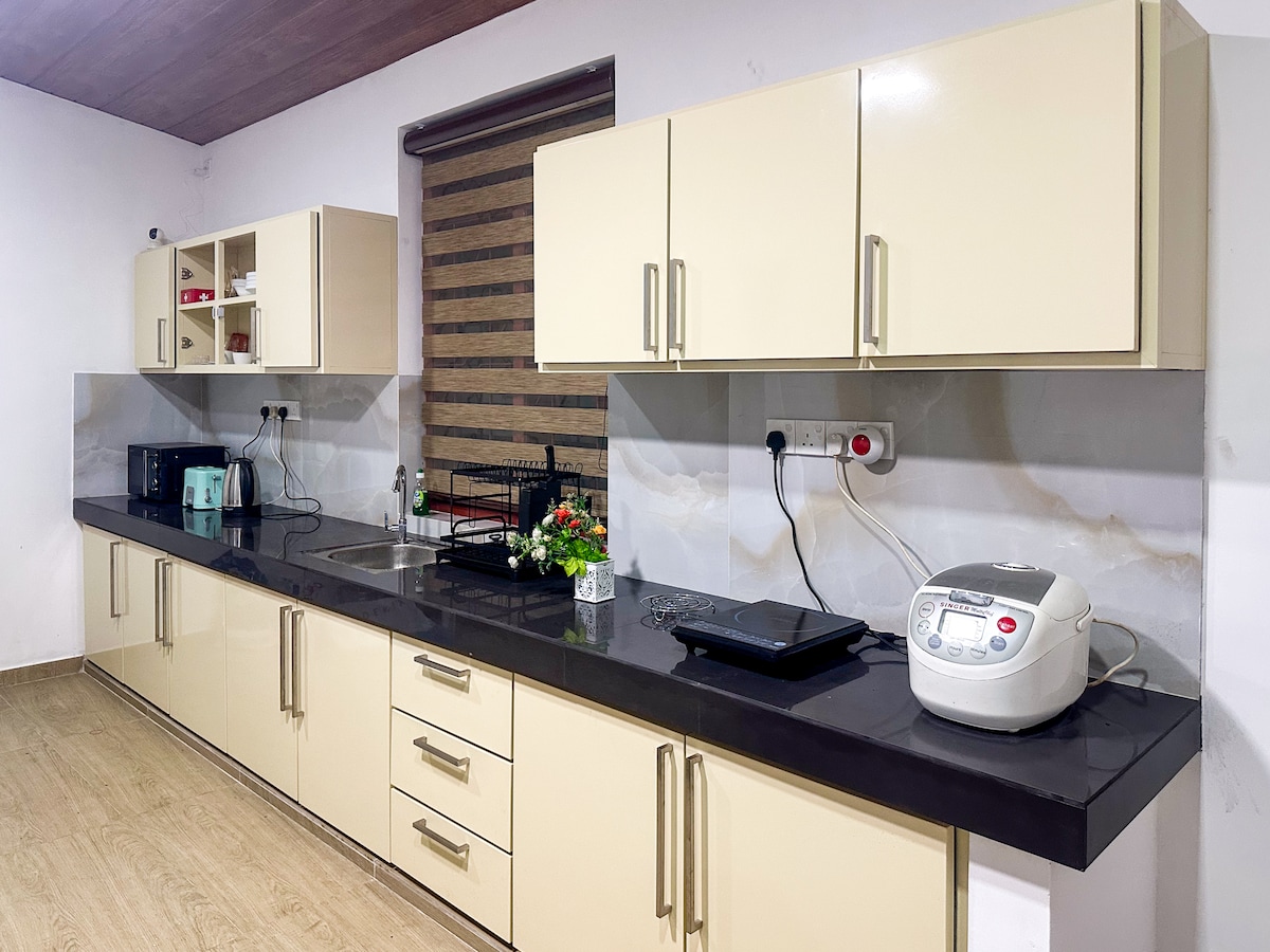 Neka bude jednostavno u ovom mirnom i centralno lociranom modernom domu u centru Kolomba 7. Pet minuta vožnje do Trga nezavisnosti/ Arkada i u radijusu od 15 minuta do glavnih hotela i restorana u Kolombu 7. Ovaj miran, ali pristupačan porodični dom pruža bezbednu i udobnu osnovu za istraživanje Kolomba i drugih delova Šri Lanke. Besplatne usluge koje pruža gostoljubivo osoblje Šri Lanke uključuju čišćenje i jednostavan kontinentalni doručak od tosta, voća, čaja i kafe.