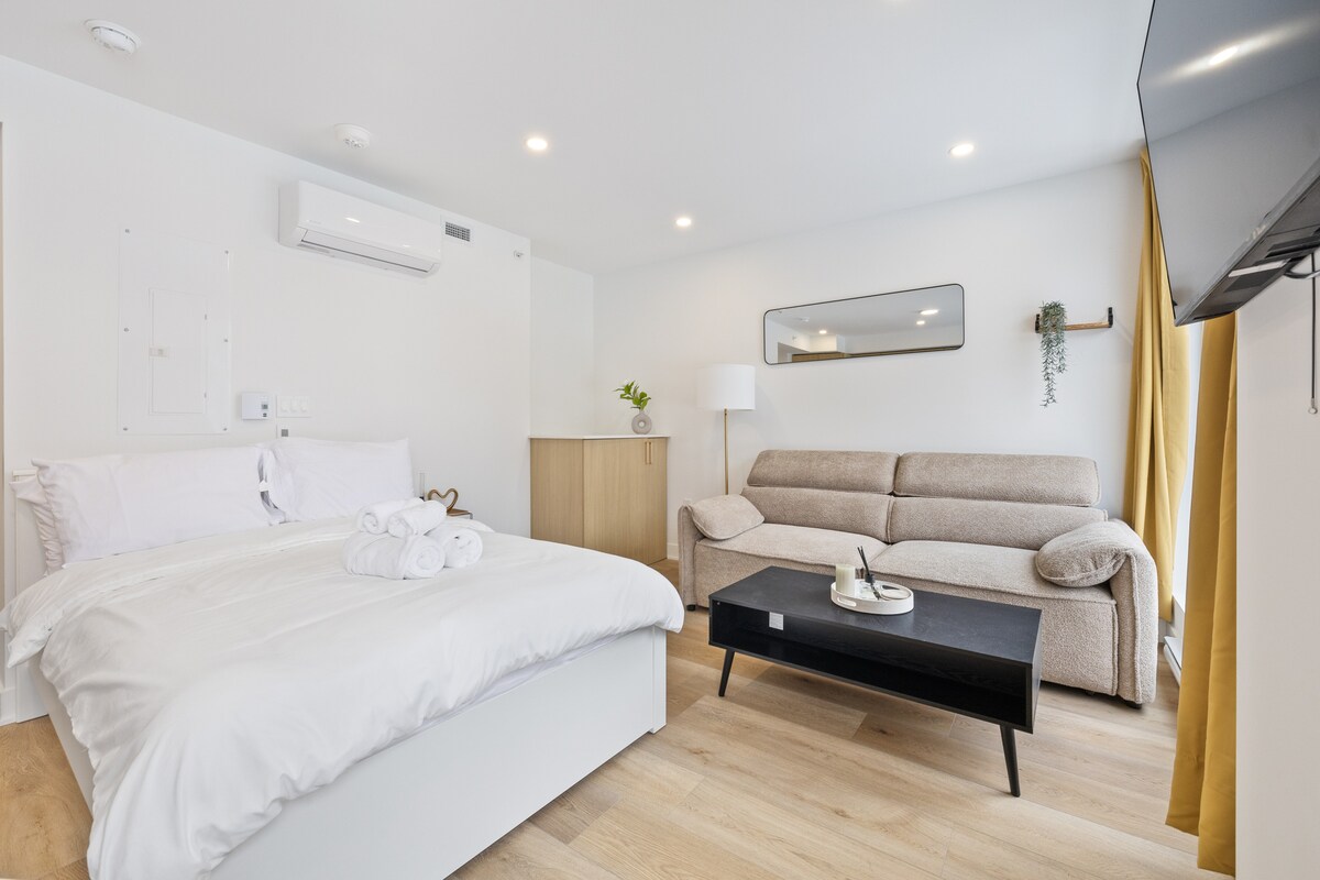 Elegantan jednosoban stan u centru Montreala! Samo nekoliko koraka od živopisnih prodavnica, restorana i noćnog života u ulici Sent Ketrin na vašem pragu. Moderan, udoban i savršen za rad ili opuštanje. Prošetajte do Konkordije, muzeja i metroa. Doživite Montreal sa stilom i udobnošću!