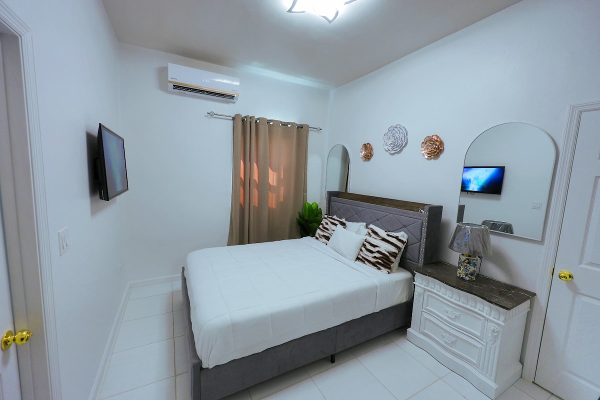 Our new Modern Studio Apartment awaits offering its warm and friendly hospitality to you. If your choice is comfort and service at a reasonable price, come and let us show you our care for your simple and most extravagant desire to enjoy a getaway with your significant other or a getaway for yourself. What are you waiting for ? The location is in South Dock Road, 5 mins from the airport, 10 from sapodilla bay beach, a few mins away from restaurants and right behind a supermarket.