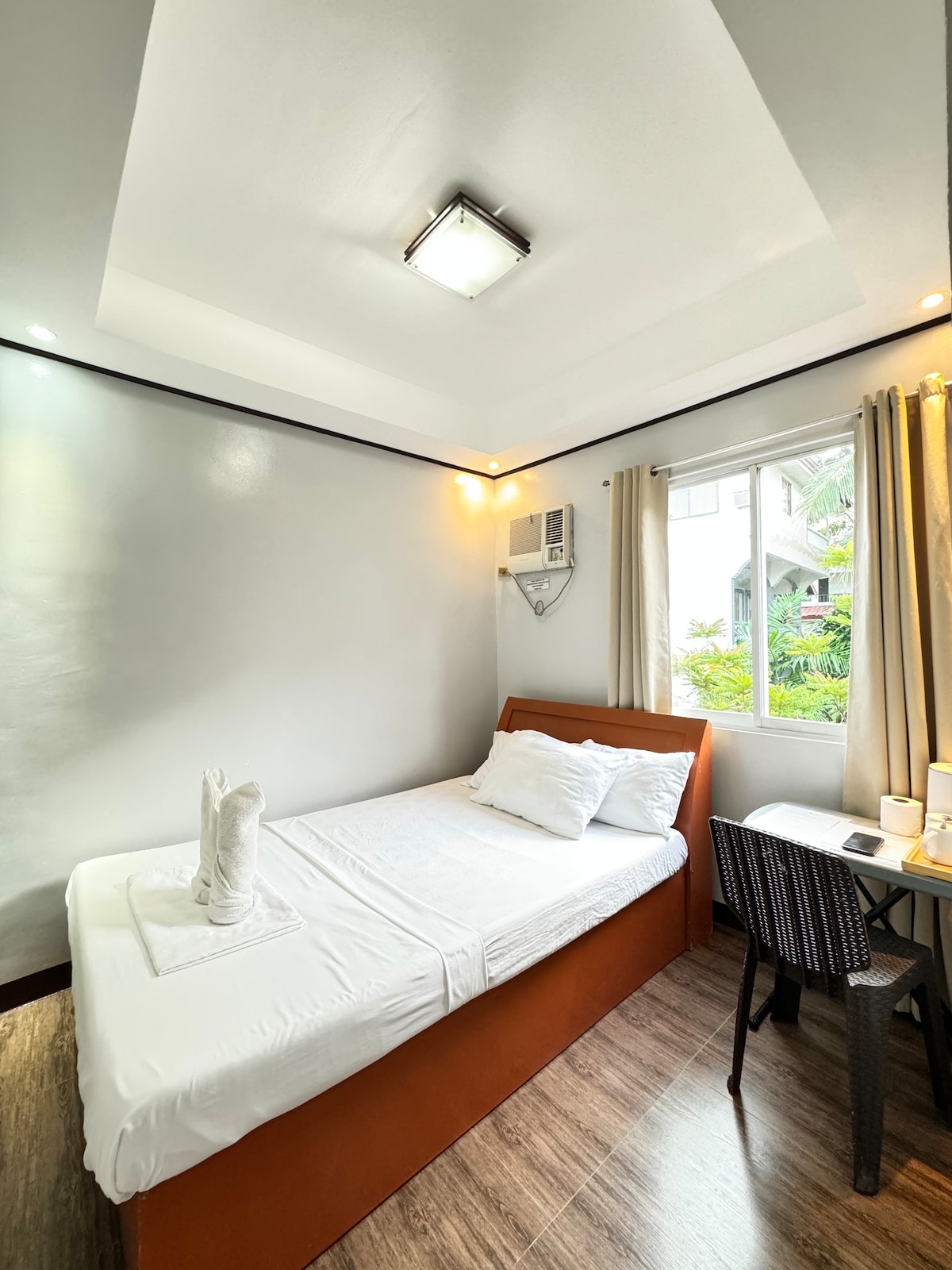 Caleo Boracay D'Mall X T.Three Apartment is DOT Accredited. ZAŠTO BORAVITI KOD NAS: - Naš stan se nalazi u centru Borakaja unutar D'Malla, u blizini stanice 2 White Beach, samo 3-5 minuta hoda kroz D’Mall - Savršeno za putovanje u grupi ili sa porodicama - U blizini prodavnica i pijace Palengke za one koji žele sami da kuvaju hranu - Posteljina, peškiri, toaletne potrepštine, opremljena čajna kuhinja Soba 4 se nalazi na 1. spratu.