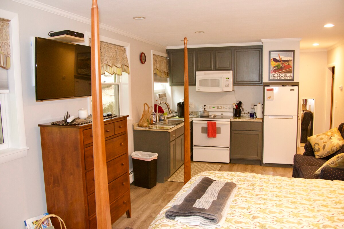 Dođite u planine, ostanite zbog šarma! Ovaj studio za vožnju u preuređenoj kući za prevoz iz 1890-ih nalazi se na rijeci Ammonoosuc u centru Litltona. Prošetajte do prodavnica i restorana nakon cjelodnevnog planinarenja, skijanja ili vožnje biciklom. Može da spava do 4 osobe (najbolje za 3 osobe) sa bračnim krevetom, velikim izvlačenjem, potpuno opremljenom kuhinjom i privatnim kupatilom - savršeno za udoban i praktičan boravak.
