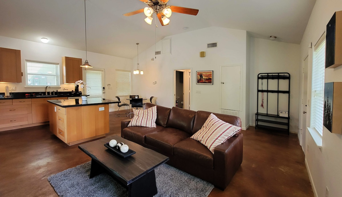 Smješten iza bungalova iz 1920-ih, ovaj šarmantni studio na prvom spratu pruža vam privatni ulaz. Doživite četvrt Istorijskih visova u Hjustonu u ovom udobnom i svijetlom studiju ispunjenom svim sadržajima koji su vam potrebni za udoban boravak. Ovaj pažljivo uređeni prostor je opremljen modernim komadima iz sredine veka i blizu je mnogim popularnim kafićima, prodavnicama, barovima i restoranima. Centar grada, Montrose i Midtaun udaljeni su samo oko 5-10 minuta.