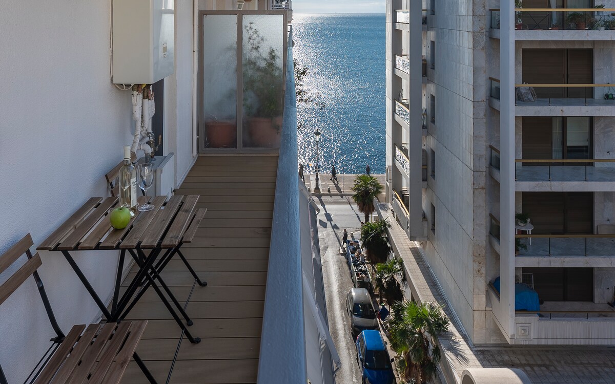 Wake up right on the White Tower with breathtaking open sea views. This fully renovated apartment features 2 separate bedrooms, a large convertible sofa bed, and balcony access from every room. Enjoy uninterrupted sea views, a fully equipped modern kitchen, contemporary bathroom with walk-in shower, fast WiFi, and Smart TV. Bright, stylish, and perfectly located in the heart of the city — ideal for couples, families, or small groups.