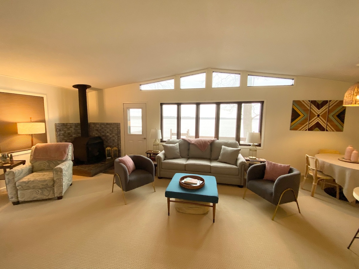 Relax and recharge at our cozy waterfront home on 90 feet of the Saginaw Bay shoreline in Au Gres. The space sleeps six comfortably with unique natural woodwork and modern amenities throughout. Perfect for fishing trips, golf weekends, or peaceful getaways. Sip coffee with sunrise views, kayak the bay, soak in the hot tub, enjoy game nights in the garage, or gather under the stars by the firepit. A perfect spot to unwind - everything you need for a memorable stay.
