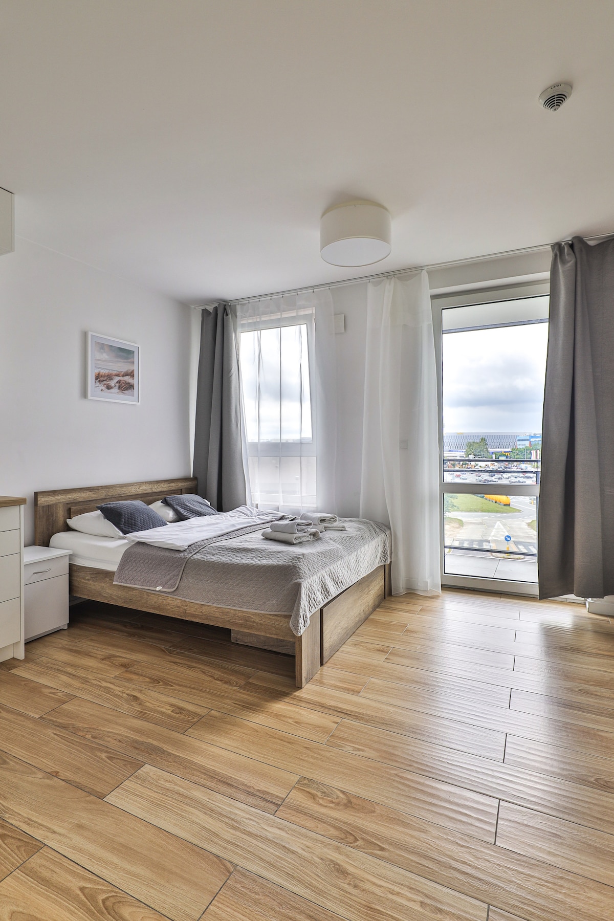 Udoban, potpuno opremljen stan u novoj zgradi. Dnevni boravak sa otvorenom kuhinjom podeljen na trpezariju i prostor za sedenje. Spavaća soba ima veliki krevet i prostranu garderobu. Postoji i ormar kao dodatni prostor za odlaganje. U blizini ima prodavnica, restorana i kafića Oprema: klima-uređaj, aparat za espreso, kuvalo za vodu, pegla, daska za peglanje, veš mašina Dolazak sa aerodroma Šopen 20 min. taksi 50 min. komunikacija od aerodroma Modlin 50 minuta taksijem 120 min komunikacija