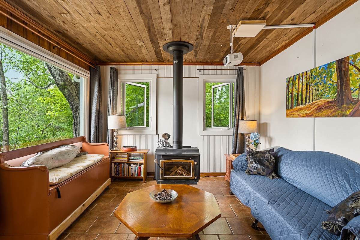 Bring your cozy socks and your new book. Make the most of winter and book your ultimate winter getaway at Serenity Now cabin. No neighbours, no noise, just peace and quiet. Ideal for couples or solo adventurers seeking peace, nature, and movie nights with an 80" projector. Private trail (4-5km) for those adventurous souls - snowshoeing, and we provide an auger and fishing rods for ice fishing. We’re committed to creating a safe, welcoming space for all. 🏳️🌈