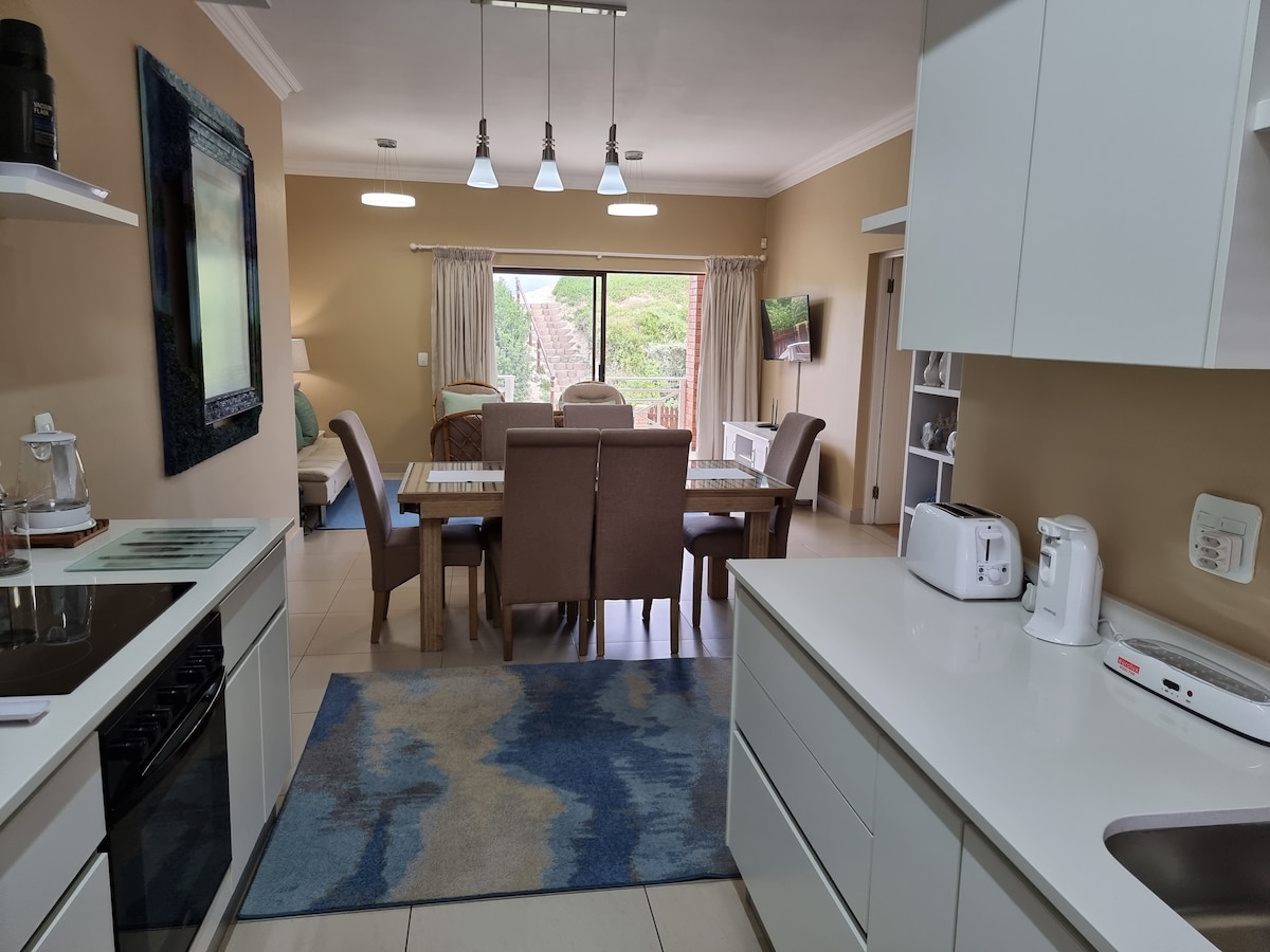 S pogledom na okean i lagunu, smještenu u rezervatu ptica nasuprot šumovitog brda i 5 minuta vožnje od netaknutih plaža i centra divljine, ova elegantna kuća s opremom za kuhanje nudi prostrane dnevne i trpezarijske prostore, terasu s grijanim bazenom, 3 spavaće sobe sa zasebnim kupatilima i privatne terase s pogledom na more i šumu. Sadržaji uključuju kućnu teretanu, opremu za pilates, Weber braai, pametni TV od75inča, kompletan DSTV, Play Station 4, sto za fussball i neograničen Wi-Fi.