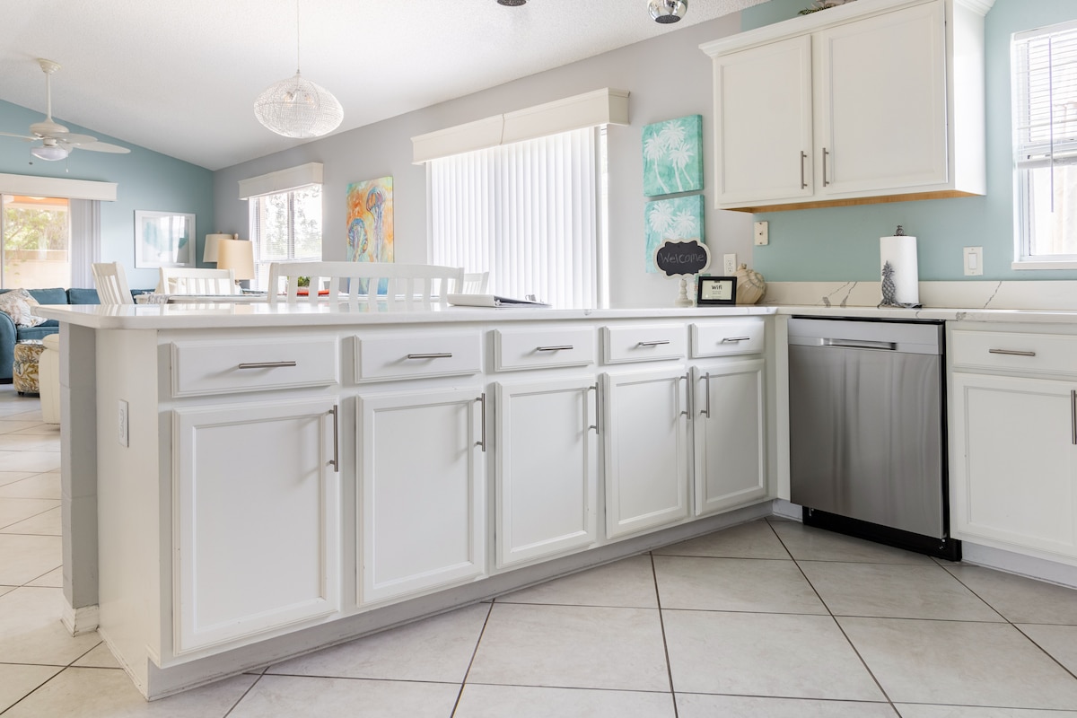 Nekoliko minuta od ulice I-75, spremni za vas i vašu porodicu da se uputite i istražite bilo koji dio Floride. Garaža se pretvorila u sobu za igre i duže uživanje u bazenu – solarno i električno grijanje za produženu proljetnu i jesenju udobnost! Naš bazen sa solarnim grijanjem omogućava vam da uživate u plivanju do ranog proljeća i kasne jeseni . Za one izuzetno prohladne dane, takođe za 50 dolara dnevno možete uživati u električnom grijaču bazena kako bi voda ostala udobna. Sezona plivanja ne mora da se završi kada dođe ljeto!