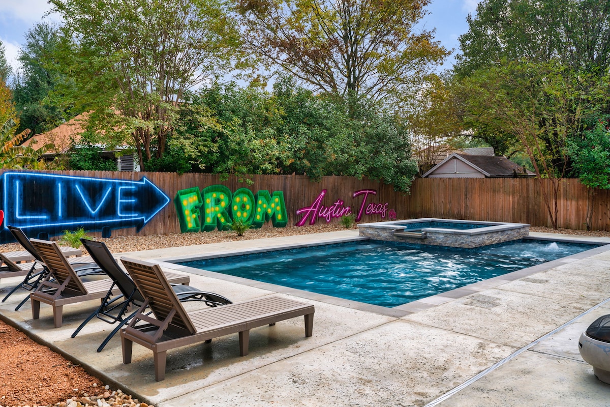 Opustite se u ovom zapanjujućem, otvorenom i zabavnom domu punom svetlosti i ličnosti. Kuća je s ljubavlju dizajnirana sa visokim plafonima, antiknim detaljima i eklektičnim namještajem za luksuzan, ali šarmantan osjećaj. Uživajte u privatnom dvorištu sa predivnim, kristalno čistim bazenom i hidromasažnom kadom. Smještaj se nalazi u srcu Round Rocka i u blizini je svega što možete da radite u gradu Ostinu sa pristupom glavnim putevima. Iako je sve što treba da uradite je samo pet minuta vožnje, područje je tiho i skrovito.