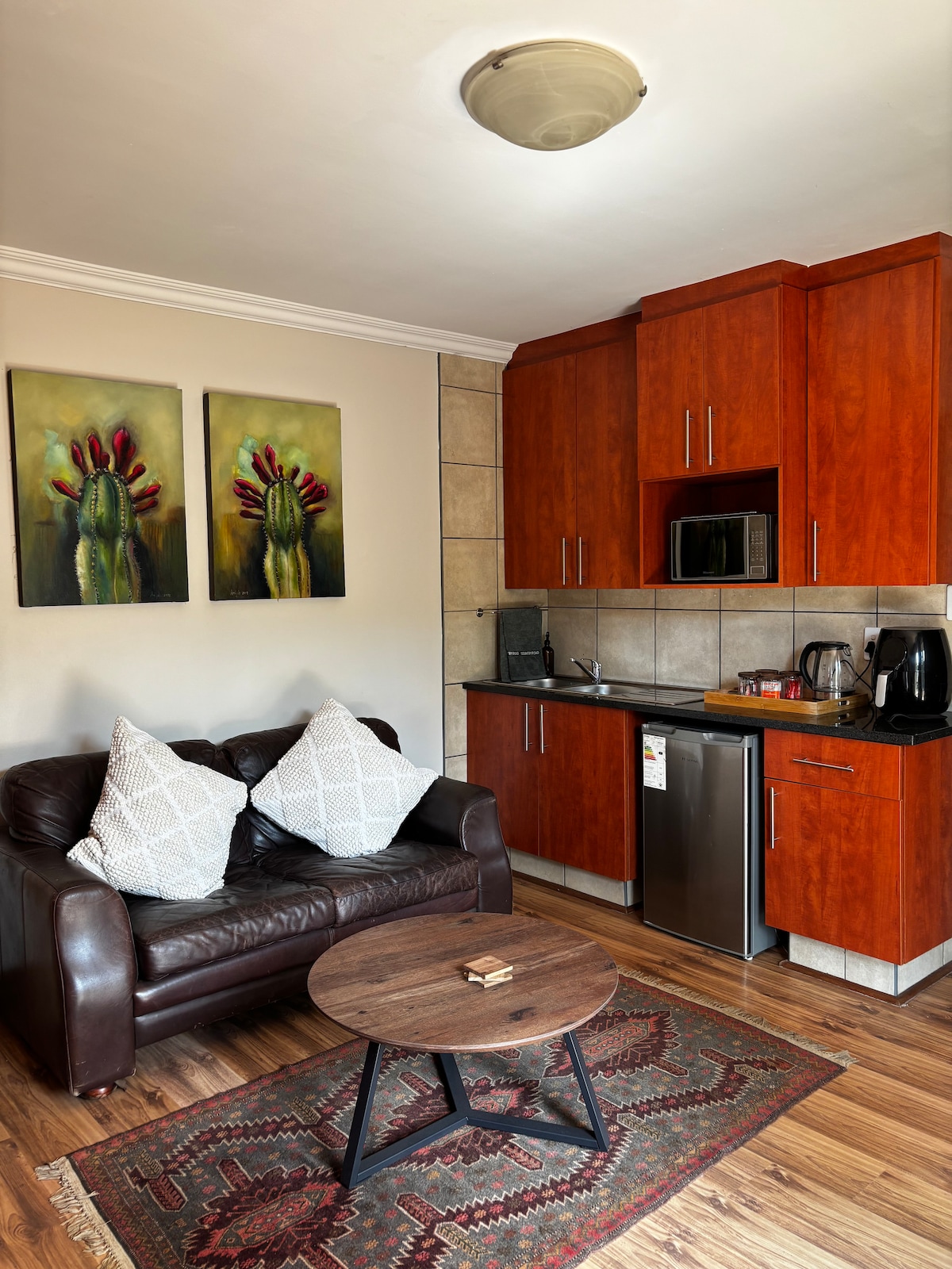 Moderan, retro stan u parku Moreleta. Nema NESTANKA STRUJE I SISTEM ZA čuvanje VODE. Privatan ulaz. Mirno utočište koje se nalazi u centru bolnice Pretoria East, Menlyn Maine i Time Square Arena, Kloof Hospital, Menlyn i pristupne rute. Pružamo prostor za rad na laptopu i BESPLATAN BRZI WI-FI BEZ ograničenja. Privatna terasa. Solarni i baterijski rezervni sistem za napajanje. Nema zajedničkih prostorija ili sadržaja. Privatna čajna kuhinja u jedinici. Gosti koji borave duže mogu da kuvaju u kuhinji glavne kuće po dogovoru.