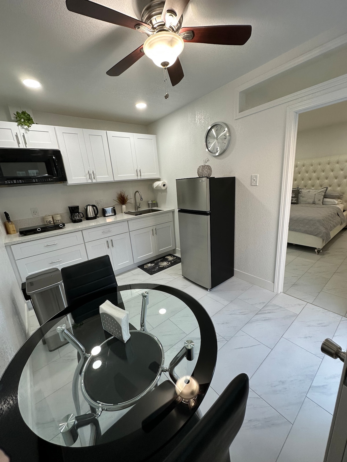 Kuća za goste (casita) u sklopu jedinjenja od 1 hektara koje je 8 minuta od aerodroma, 10 minuta do Stripa i manje od 15 minuta od novog stadiona Allegiant. Kazita se sastoji od 3 mini apartmana (spavaća soba sa privatnim kupatilom), dnevnog boravka/trpezarije, kompletne kuhinje, vešernice i praonice. Zajednički prostor izvan gostinjske kuće uključuje bazen, spa, sobu za vežbanje, teren za turšiju, teren za boćanje i unutrašnje dvorište sa gasom i električnim roštiljem. ZA DELJENJE ZAJEDNIČKIH AREAS-SEJTE U nastavku.