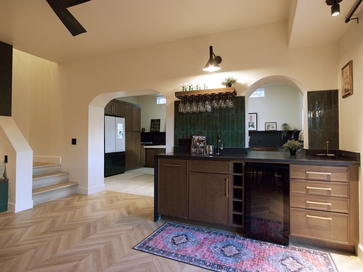 Nedavno renovirana kuća za goste koja se nalazi u mirnom centralnom dijelu u podnožju Kataline. Staze i vožnja biciklom u našem dvorištu, 10-15 minuta vožnje do planinarenja/parkova, centra grada i UofA! Daleko od svega, a ipak praktično blizu svega! Uživajte u prelijepom pogledu na planine i profesionalnom uređenju pejzaža. Dobro opremljena kuhinja s mašinom za pranje/sušenje veša i udobnim kaminom i radnim stolom u glavnoj spavaćoj sobi. Mnogo privatnosti od glavnog doma. Opremljen svim sadržajima potrebnim za ugodan i udoban boravak.