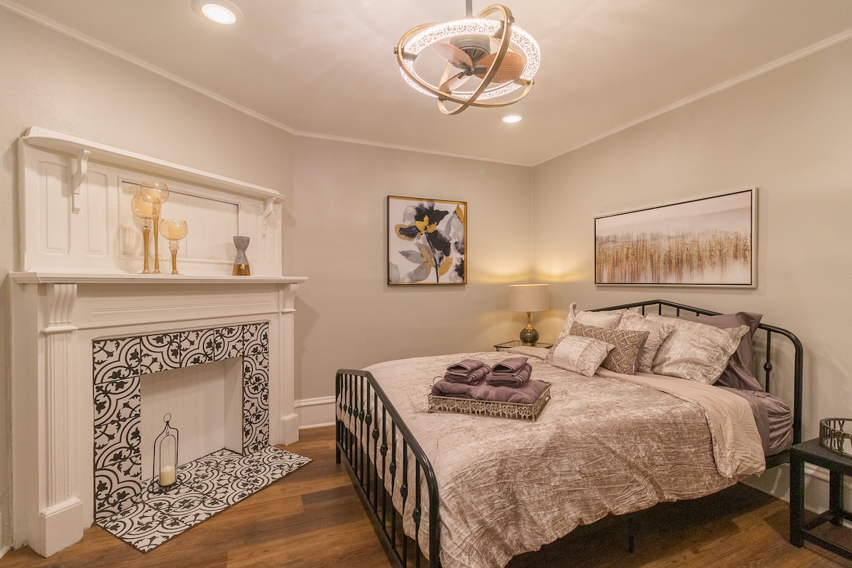 Uživajte u ovoj sveže restauriranoj istorijskoj zgradi u svom privatnom stanu sa 2 spavaće sobe. Uživajte na jutarnjem suncu uz kafu na vašem privatnom balkonu. Otvoreni raspored sa plafonima od 11 stopa, velikom kuhinjom i ostrvom u kuhinji, radnim površinama od belog kvarta, novim drvenim podovima i neverovatno udobnim krevetima poželeće vam dobrodošlicu u vaš dom. Pranje veša, WI-FI, 4K TV sa kablovskom televizijom i Netflix/Amazon, vinski frižider, pristup liftu i parking van ulice. Dozvola # TBES-BEJạ8