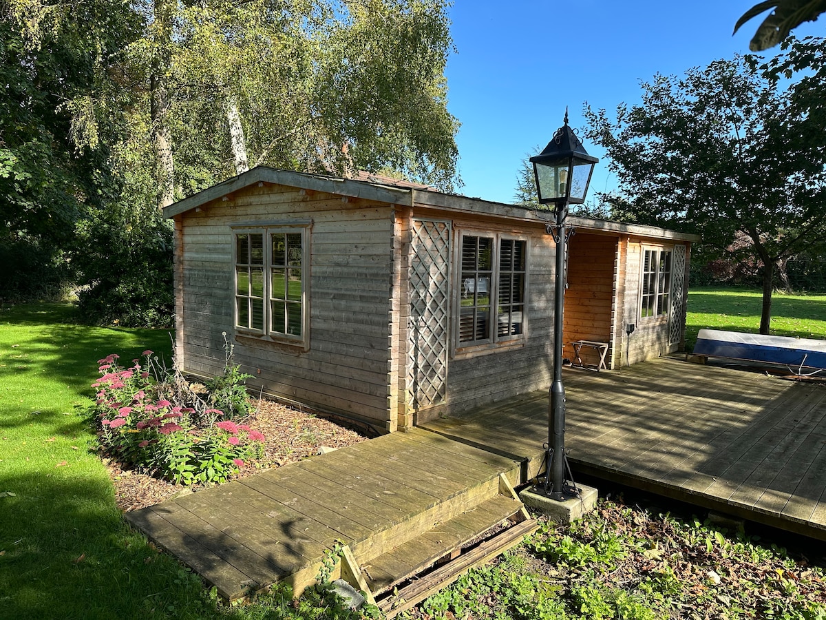 Šarmantna brvnara uz rijeku na obali Keneta, s pogledom na prirodni rezervat. Privatno smještena u mom dvorištu nalazi se velika soba otvorenog plana sa 2 kauča na razvlačenje, za 4 osobe, bilijarskim stolom od škriljevca i Hi Fi sistemom. Postoji luksuzno kupatilo sa bakarnom kadom, tušem, umivaonikom i WC šoljom. Tu su osnovni kuhinjski sadržaji sa čajnikom, tosterom, dvostrukom pločom za kuvanje, mikrotalasnom rernom i roštiljem, sudoperom i frižiderom/zamrzivačem. Veranda sa 2 roštilja i sjedištima i donjom palubom sa pogledom na reku.