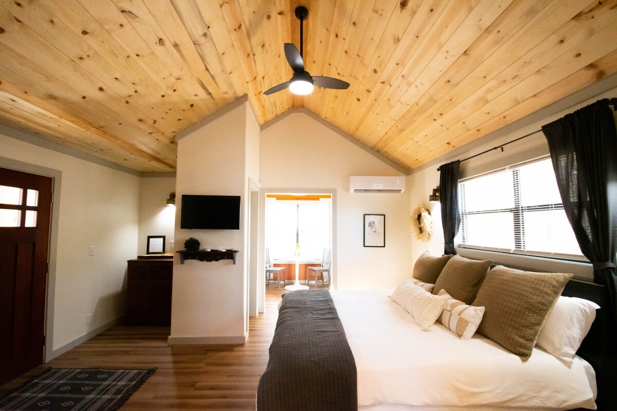 Prairie Creek Cottage ‘B’ je udaljena 5 minuta od centra Mene. Uživajte u privatnosti i prelepom pogledu u ovoj zajednici terena za golf. Ovaj studio apartman sa 1 spavaćom sobom/1 kupatilom je 1 od 2 metalne dupleks jedinice opremljene svim udobnostima doma, uključujući natkriveno unutrašnje dvorište, ZAJEDNIČKU terasu 16x20’sa spoljnim nameštajem/roštiljem na ugalj. Ova zajednička terasa ima svetla na otvorenom i dovoljno prostora da podignete noge i opustite se na kraju dana. Kajaci za smeštaj! Vozite se jedan pored drugog od seoske kuće do Wolf Pen Gap-a i Fourche Mtn. Mapa je dostupna.