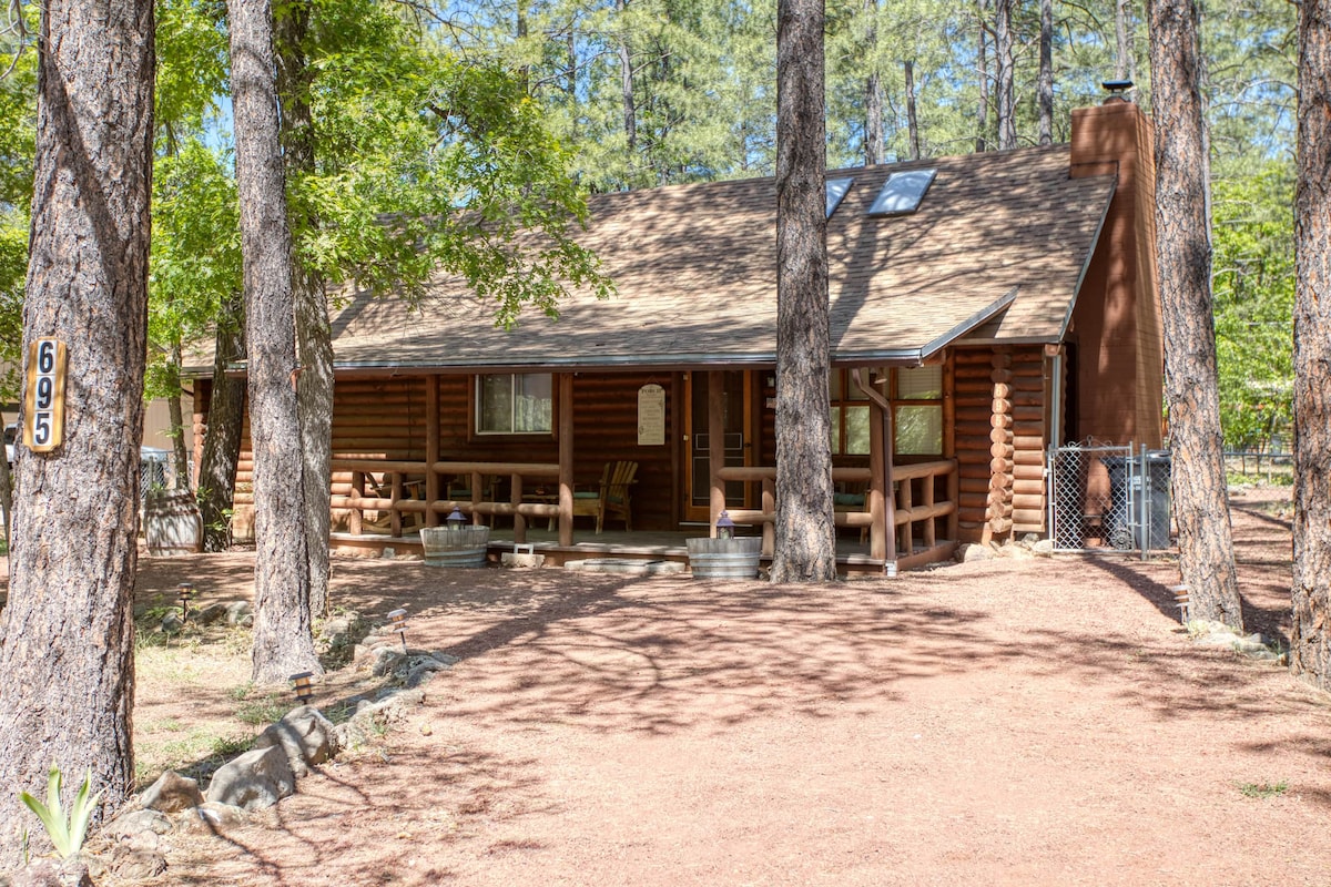 Brvnara u šumovitom prostoru u Pinetopu, 3 kreveta. 2 kupatila, prostrana dnevna soba i lijepo opremljena kuhinja sa plinom, mikrotalasnom rernom, frižiderom i aparatom za kafu (bez mašine za sudove). Mašina za pranje i sušenje veša je na licu mesta. Velika okolna terasa za uživanje u pogledu i svežem vazduhu. Udaljenost od barova i restorana i nekoliko minuta vožnje do prodavnica, bioskopa, druge zabave. 30 minuta vožnje od skijališta Sunrise. Besplatan brzi internet. Bez kućnih ljubimaca. Zabranjeno je pušenje unutra. Vanjske sigurnosne kamere.