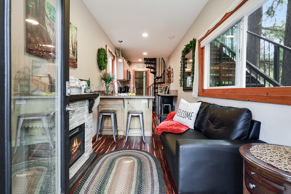 Sandy’s first and only Tiny House! Located just one mile from Hwy 26, this unique tiny home sits on 23 acres, offering a peaceful, private setting with easy access to Mt. Hood adventures. The tiny house has its own space and stunning Mt. Hood views, with our main home visible but not impacting your privacy. Designed around a custom moving window wall system, it opens fully to the outdoors, bringing the mountain right into your stay for unforgettable sunrises, sunsets, and true Mt. Hood magic.