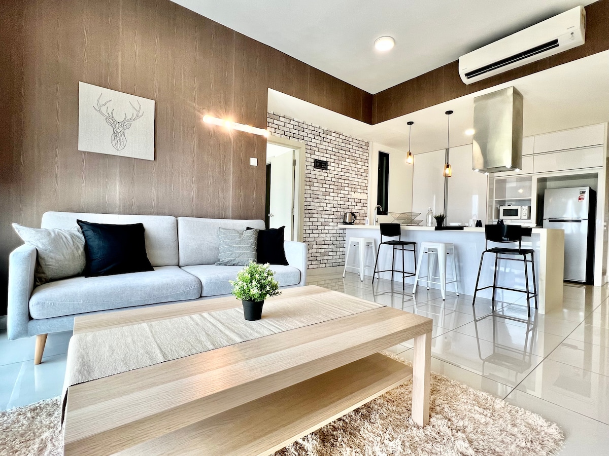 Luxury design and spacious 3-Bedrooms unit with bathtub! Premium quality King & Queen size Beds that guarantee your good sleep here with amazing view of Midvalley Mall and JB town. We have Smart TV equipped with YouTube and Netflix apps! Also water purifier machine that ease your stay here! Surround with shopping mall & wide range of local tasty food! - 2 mins drive to Midvalley Southkey JB - 5 mins to KSL City Mall - 8 mins to City Square Mall & Custom JB