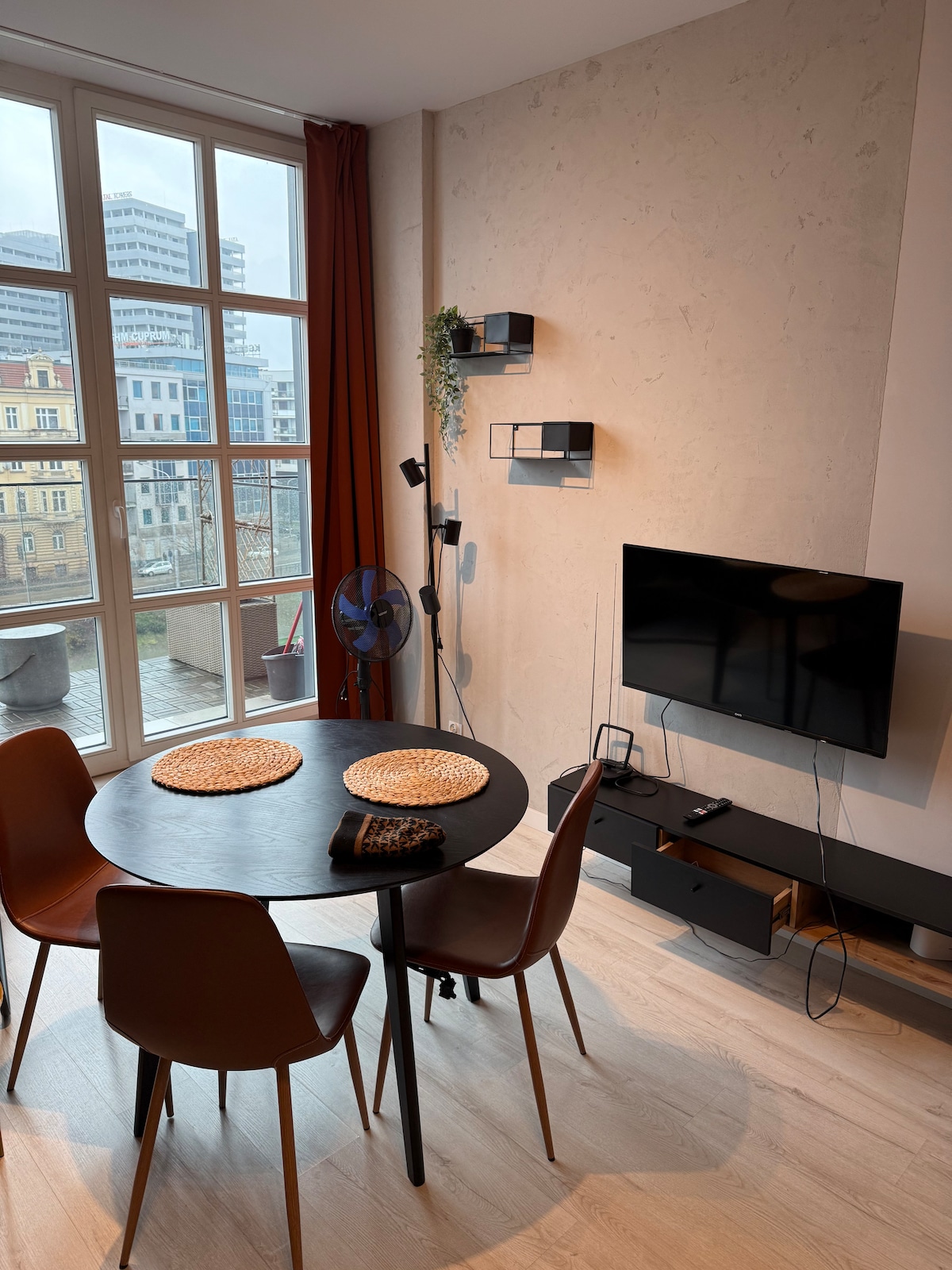 Ekskluzivan, moderan i funkcionalan stan sa spavaćom sobom, velikim dnevnim boravkom sa prelijepim pogledom na Vroclav. Nalazi se u novoj stambenoj zgradi na 13. spratu sa sopstvenim podzemnim parkingom i danonoćnim obezbjeđenjem. Potpuno opremljena kuhinja vam omogućava da pripremate domaće obroke. Visok standard, udobnost, bezbjednost i osjećaj privatnosti čine da se gosti osjećaju kao kod kuće. Bežični internet i Netflix. Pristup teretani, suvoj i parnoj sauni, đakuziju i igraonici za djecu.