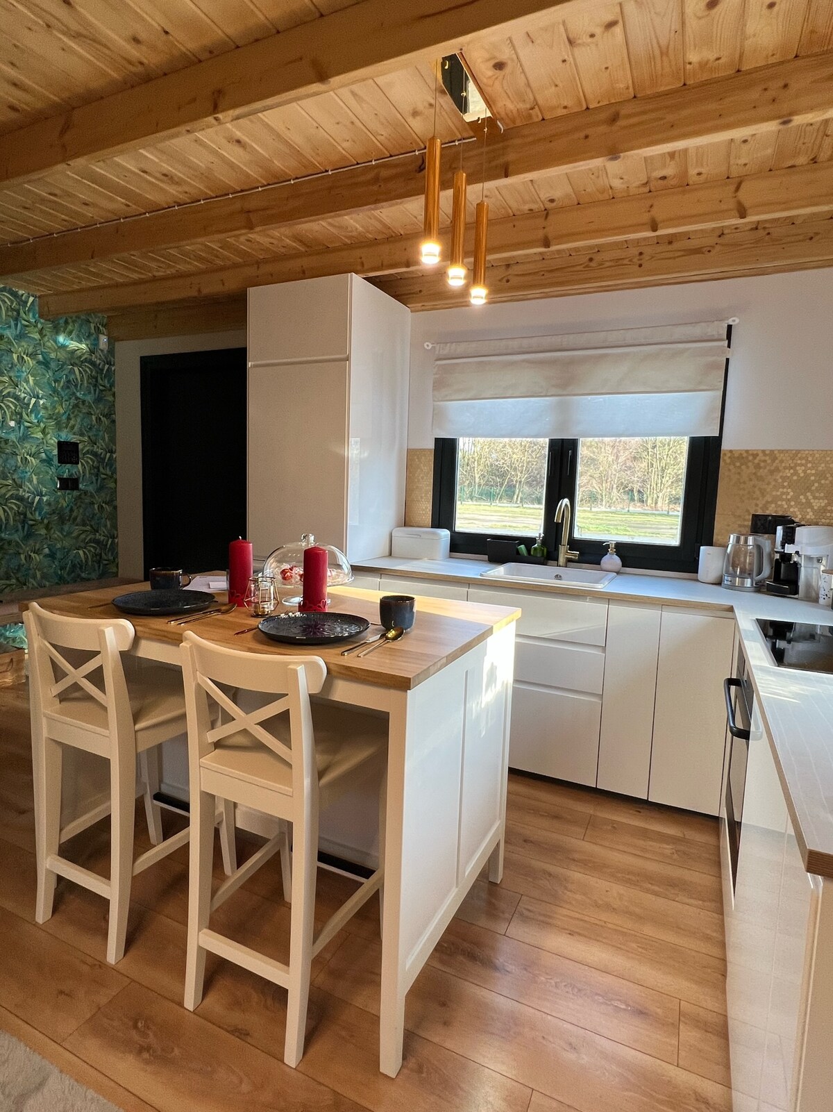 Kuća ima dve sobe na spratu i veliki dnevni boravak u prizemlju, kupatilo sa tuš kabinom i potpuno opremljenu kuhinju. Prostrana terasa, na kojoj bi roštiljanje trebalo da bude veliko zadovoljstvo, a gosti imaju na raspolaganju saunu i baštensku kadu sa pogledom na šumu. SPA zona je smeštena tako da se očuva privatnost, a gosti se ne osećaju nelagodno. Kuća je klimatizovana i nalazi se u blizini jezera i plaže
