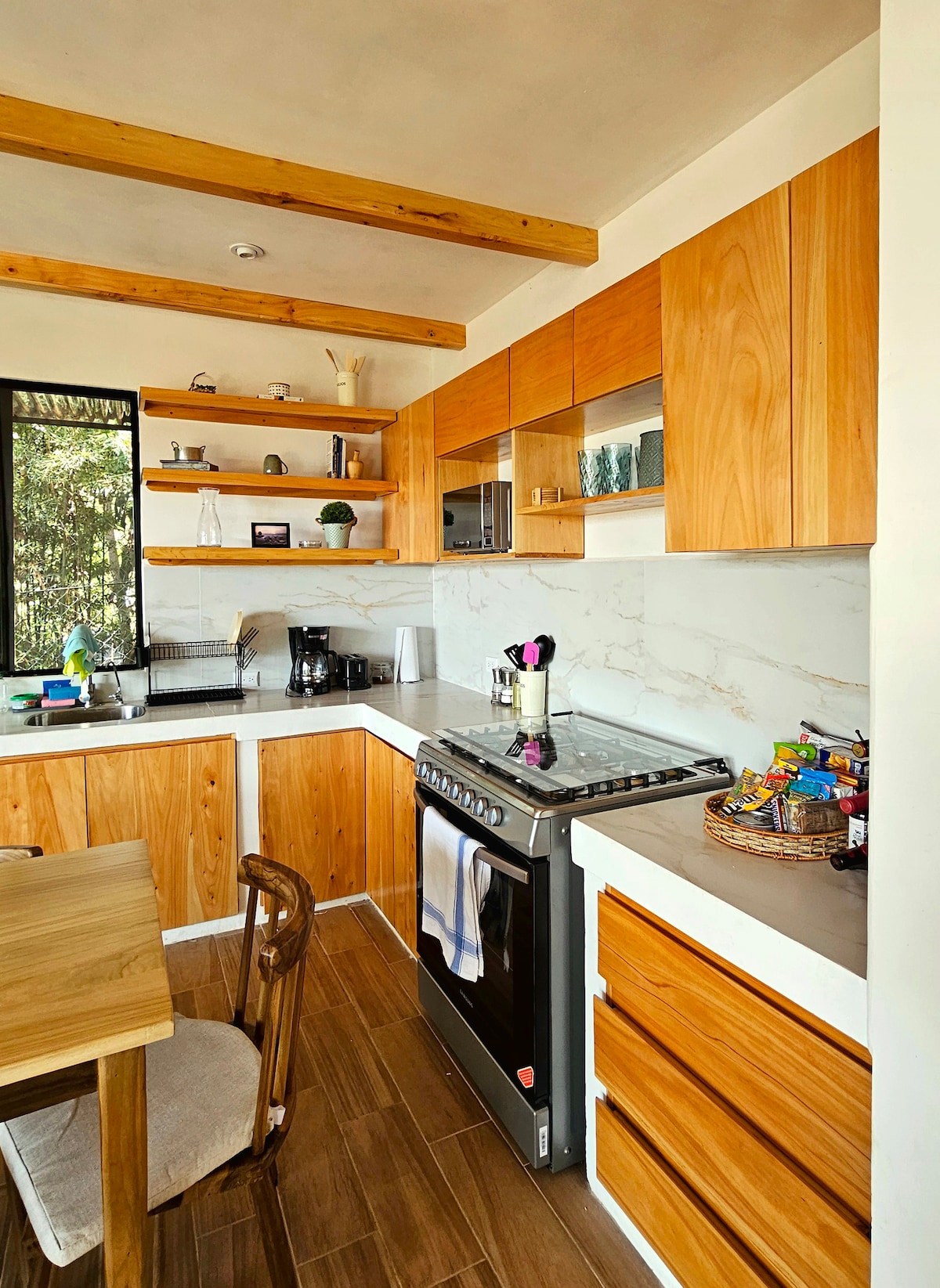 Disfruta del bosque y la ciudad, en un lugar único y acogedor a solo 3km del Parque Central de Xela, en el corazón de la Labor Las Vegas, la comunidad favorita de muchos Airbnb lovers. Nuestras casas están rodeadas de naturaleza, flora y fauna silvestre, pueden disfrutarlo al máximo en la pergola o si recorren los senderos naturales al rededor o si no es de su interés pueden descansar en el interior.