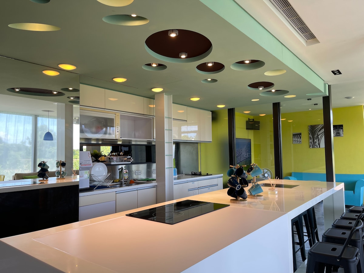 爵士風 - 網美戲水泳池、原影音卡拉OK、120吋投影機、星空浴室、電動麻將桌、烤肉、中島廚房 包棟