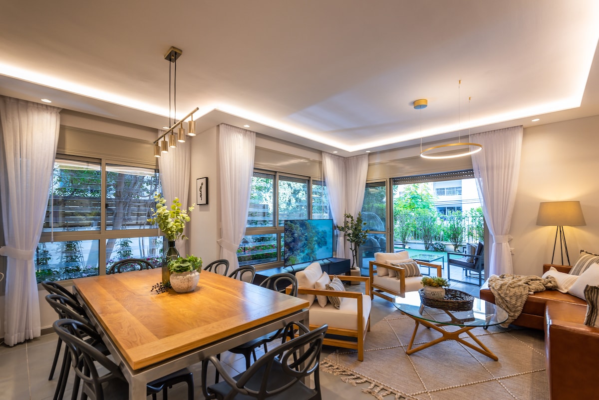 Welcome to our stunning renovated penthouse nestled in the heart of TLV, mere moments from the shimmering beach. Occupying the top floor of a meticulously preserved Bauhaus building, this apartment offers an unbeatable blend of historic charm and modern. a world of sophisticated elegance as soon as you open the door. The highend interior design of this penthouse pays homage to the Bauhaus style,The spacious, open layout creates an inviting atmosphere, perfect for relaxation or entertainment
