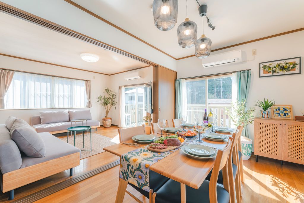 Seoska kuća u odmaralištu Fuji Hokuroku Iznajmljivanje vile na brdu s pogledom na planinu Fudži i grad Fudži-Joshida SWEET VILLA TAKASAMA SWEET VILLA TAKASAMA ima elegantan i opušten enterijer zasnovan na japanskom modernom stilu. Praktično se nalazi kao baza za razgledanje, razonodu i aktivnosti u odmaralištu, uključujući Fuji Five Lakes (Mt. Fudži, jezero Kavaguči i jezero Jamanaka), Oshinohakkai i Fuji-Q Highland. Vila se nalazi na visokoj lokaciji i možete vidjeti planinu Fudži i grad Fudži-Joshida.