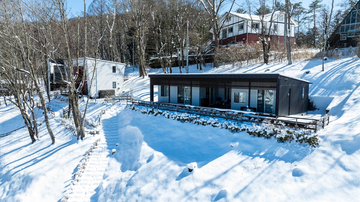 The newly built house just opened in September 2020. It is located up on the hill in Yamanakako Forest Villa, right next to Hananomiyako Kouen. The Mt. Fuji view is just a few minute's walks from the house, and you can see it during the wintertime from the house deck. Surrounded by forest, the calming scenery is the best place to spend time with your families and friends, BBQ in the summer, or even working remotely.