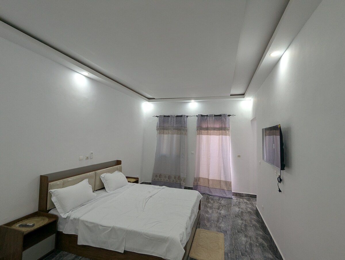 Résidence meublée une villa de deux chambres autonomes et une toilette pour les visiteurs, un grand salon confortable et une salle à manger, une cuisine équipée et un parking. La particularité de cette résistance c’est le calme et un endroit paisible et discret