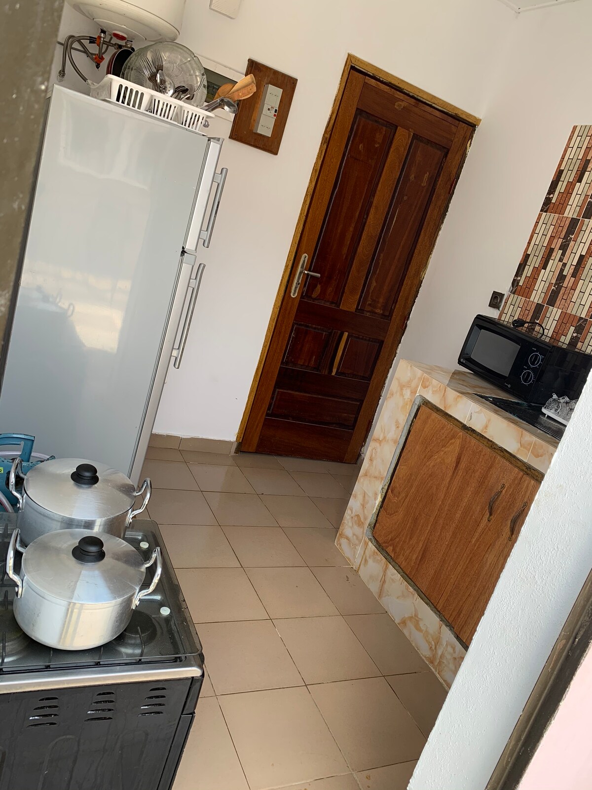 Résidence meublée une villa de deux chambres autonomes et une toilette pour les visiteurs, un grand salon confortable et une salle à manger, une cuisine équipée et un parking. La particularité de cette résistance c’est le calme et un endroit paisible et discret