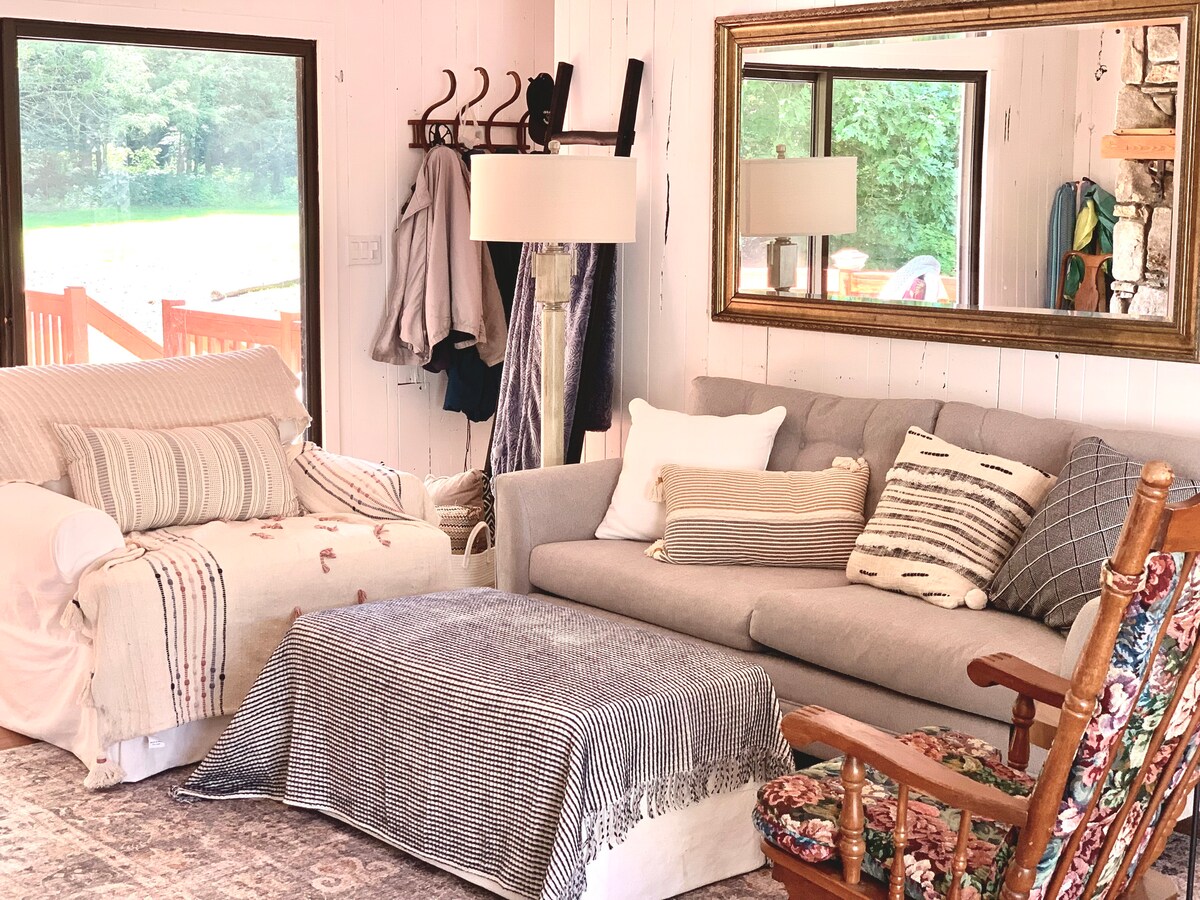 Cabin/Tiny Home. Relax & enjoy amazing mtn. views, 200 acres of trails, woods, pastures, farm, & fields. HURRICANE HELENE: TRAILS ARE NOT COMPLETELY ACCESSIBLE NOW DUE TO HELENE. Our trails & woods have been ravaged with 100's of trees down. Many trails are still not cleared. Our 1.5 mile upper ridge trail loop and one river trail are now open. Pastures and fields are mostly cleared and all areas around the cottage are completely cleared with amazing long range views of fields and mountains.