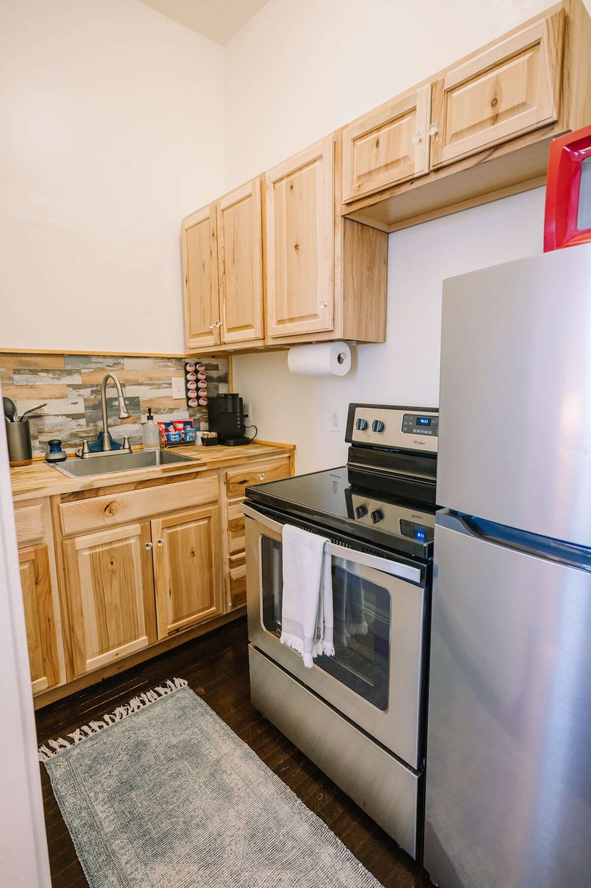 Trijem u Fairystoneu je vaš dom daleko od doma. Ova kuća za odmor sa 1 spavaćom sobom i 1 kupatilom ima veliki otvoreni koncept sa dnevnim boravkom, kuhinjom i trpezarijom u jednoj velikoj sobi. Kroz prelijepa vrata ambara pronaći ćete spavaću sobu i ormar za veš sa mašinom za pranje i sušenje veša. Uživajte u prelijepoj spoljnoj trpezariji sa stolicama za 3 osobe i roštiljem za spremanje omiljenih jela. Samo nekoliko minuta od državnog parka Fairystone, Goose Point i Philpott Marina, brane i jezera.