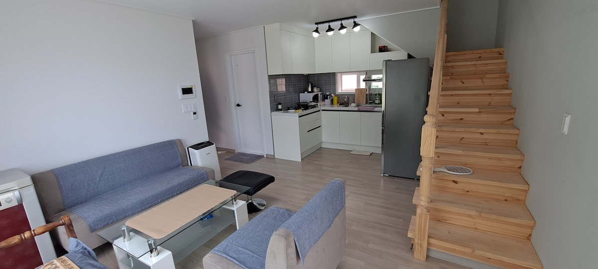 To je seoska kuća koja se nalazi u mjestu Dundeok na zapadnoj obali ostrva Geoje. To je seoska kuća koju je par domaćina lično popravio i dotjerao za dug dan. Ovo je emocionalni smještaj koji je napravio izgled stare kuće što je više moguće i ima evropski enterijer sa ekološki prihvatljivim materijalima. Niski krov i struktura jedinstvene stare kuće su zabavni i možete osjetiti osjećaj seoske kuće. Nalazi se u sredini sela gdje se nalazi kancelarija Dundeok-myeon, a tu su i Hanaro Mart, kineski restoran, Hot Place Handmade Burger, prodavnica mješovite robe, restoran s piletinom, Hot Place, Prop Shop, 5 Blue Ribbon Cafes i drugi restorani, tako da sve ove sadržaje možete koristiti pješke. Postoji ušće koje vodi do mora u roku od 3 minuta hoda, Možete prošetati šetnicom do mora dok uživate u pejzažu prelijepog ušća. To je mjesto gdje možete da osjetite senzibilitet mirnog i toplog seoskog sela. Takođe je dobro mjesto za istraživanje poznatih turističkih atrakcija u blizini. Tačna lokacija smještaja je Sada je 6, Hadun 3-gil, Dundeok-myeon, Geoje-si, i podsjetićemo vas čim bude rezervisano. Prijava u 15:00 Odjava: 00:00
