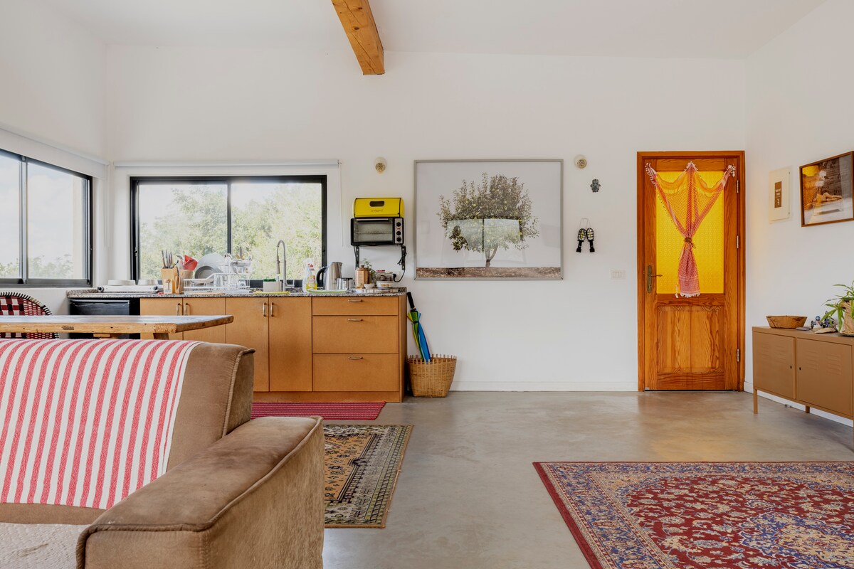 Smješteno u mirnom selu Kadime, naše renovirano utočište nudi savršen odmor — samo 15 minuta od živopisne Netanje. Okružena prirodnim rezervatima i poljima jagoda, naša elegantna kuća pored bazena spaja butik dizajn sa čistim spokojem. Uživajte u ogromnom bazenu natopljenom suncem, najmodernijem đakuziju, vanjskom tušu i bujnim privatnim baštenskim prostorima za opuštanje. Bilo da tražite elegantno opuštanje ili brz pristup plažama, restoranima i kulturi — čeka vas odmor iz snova.
